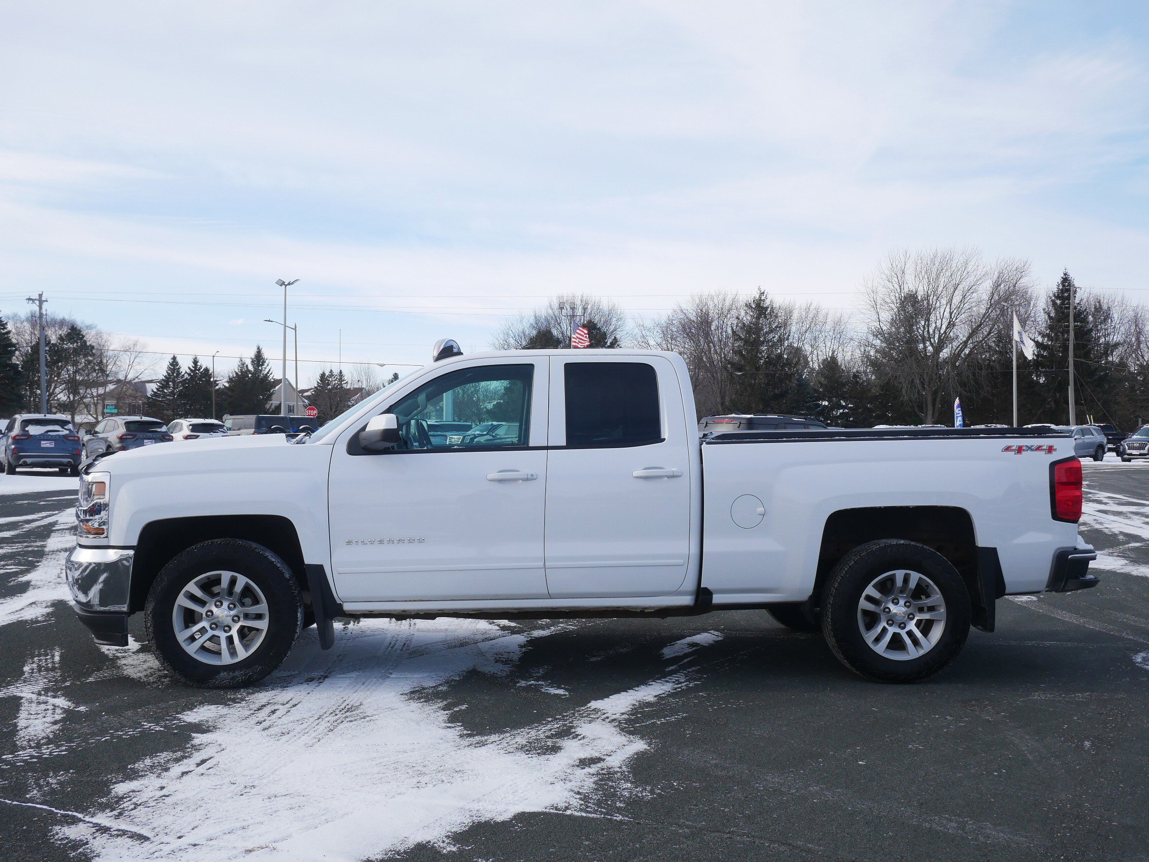 The 2016 Chevrolet Silverado 1500 LT 4x4 delivers proven V8 capability, strong towing features, and everyday practicality in a half-ton pickup built for both work and comfort. Powered by the 5.3L EcoTec3 V8 paired with a 6-speed automatic, the Silverado offers confident performance and an EPA-rated 18 MPG combined, with the Max Trailering Package enhancing tow capability through a 3.73 axle ratio, trailering equipment, integrated trailer brake controller, enhanced cooling and upgraded springs. The LT trim adds an 8-inch touchscreen with MyLink, Bluetooth, SiriusXM, OnStar 4G LTE WiFi, Pandora compatibility, steering wheel audio controls and split bench seating for six, while the LT Plus Package adds power adjustable pedals, sliding rear window, park assist sensors and a universal home remote. This example is also equipped with 18-inch bright machined wheels, all-terrain tires, rear wheelhouse liners, locking rear differential and heated power mirrors for utility-focused use. Rated five stars overall by NHTSA, the Silverado combines capability and safety with a comfortable cabin layout and practical storage. Finished in Summit White with a Jet Black interior, the Silverado 1500 LT remains a versatile choice for drivers who need a truck that can tow, haul, commute and handle weekend projects with ease!