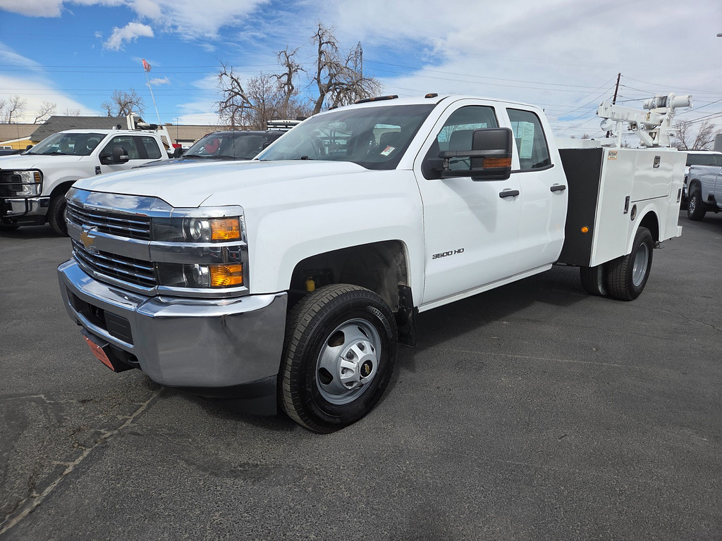 2016 Chevrolet Silverado 3500HD Extended Cab Work Truck – Utility Bed – Crane / Boom Lift – 6.0L V8 Flex Fuel. If you need a serious heavy-duty service truck, this 2016 Silverado 3500HD Extended Cab Work Truck is built to perform. Equipped with a utility service body and crane/boom lift, this truck is ready for demanding job sites and field service work. The proven 6.0L gas V8 offers strong torque, durability, and lower maintenance costs compared to diesel for many operators. This setup saves time and labor on every job. Fleet-maintained and Colorado-owned — exactly what buyers look for in a work-ready HD truck. Dye Autos – Veteran & Family Owned. We specialize in 2500HD & 3500HD trucks, utility bodies, crane trucks, flatbeds, cargo vans, box trucks & commercial vehicles.