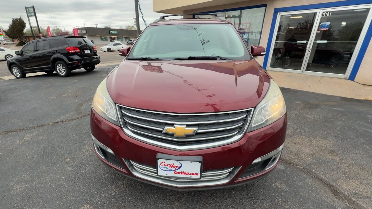 The 2016 Chevrolet Traverse LT offers a spacious interior with seating for up to eight passengers, a powerful V6 engine, and a range of convenience features. This all-wheel drive Traverse is ideal for families or anyone needing extra cargo space. Enjoy a comfortable ride with heated seats, power driver seat, and a wood grain interior trim. The Traverse is designed for versatility and comfort, making it a great choice for daily driving or long trips.