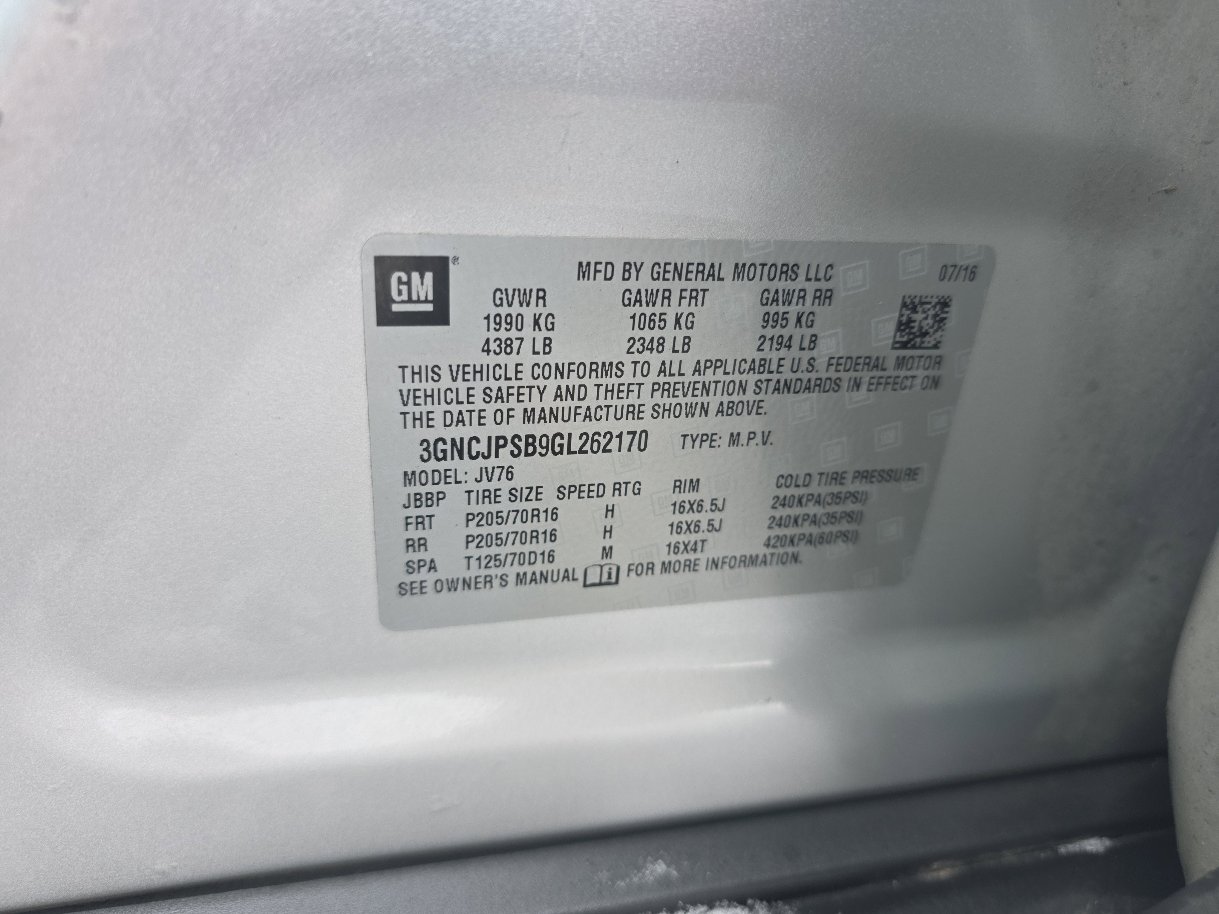 VIN: 3GNCJPSB9GL262170