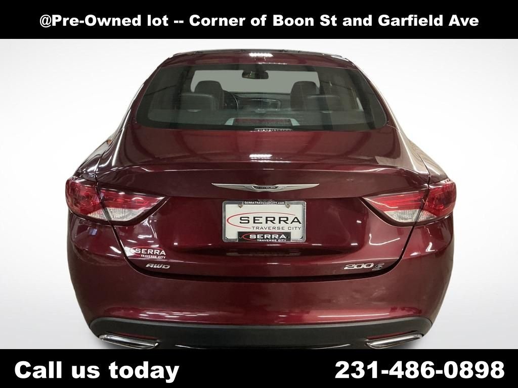 2016 Chrysler 200 S AWD 4D Sedan 3.6L V6 24V VVT Velvet Red Pearlcoat 18/29 City/Highway MPG Black Leather. Odometer is 30224 miles below market average! This vehicle also includes our 7 Point Assurance Package, which consists of Market Base Pricing, Auto-Biography from Carfax, Full Tank of Gas, Price Protection Guarantee, Exclusive 7-day Exchange, Premier Financing Program, Northern Michigan's Largest Certified Dealer! This vehicle is AUL Certified and is covered for 24 months/125,000 miles! Covered parts include the engine, transmission/transaxle and front/rear-wheel drive. Rental reimbursement is included for failing covered parts. Ask us for more details!