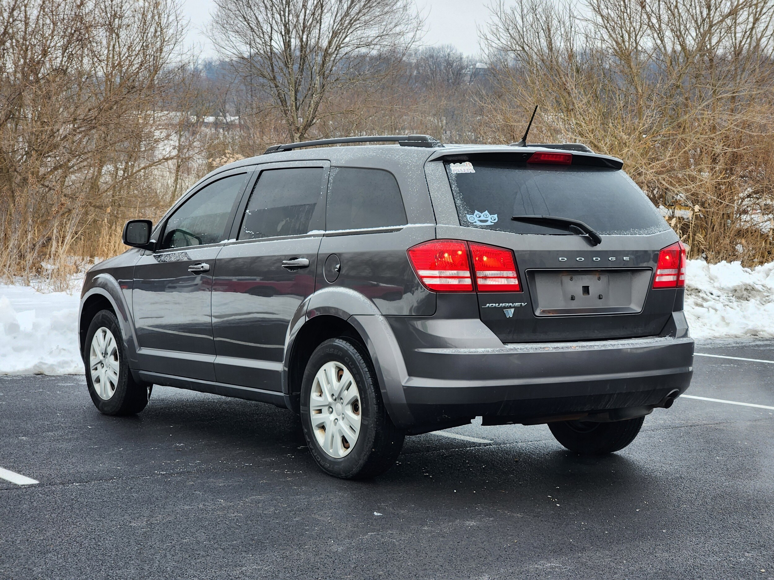 Jeff Wyler Chrysler Dodge Jeep of Lawrenceburg is delighted to offer this terrific-looking 2016 Dodge Journey SE in Granite Crystal Metallic Clearcoat. Flexible Seating Group (2nd Row 40/60 Tilt & Slide Seat, 3rd Row 50/50 Fold/Reclining Seat, Air Conditioning w/3-Zone Temperature Control, Delete Cargo Compartment Cover, Easy Entry System Seat, and Rear Air Conditioning w/Heater), Popular Equipment Group (Interior Observation Mirror, Leather Wrapped Shift Knob, Leather Wrapped Steering Wheel, Overhead Console, Passenger Assist Handles, and Sun Visors w/Illuminated Vanity Mirrors), Quick Order Package 22F SE, 17" Wheel Covers, 17" x 6.5" Steel Wheels, 4-Wheel Disc Brakes, 4.28 Axle Ratio, 4.3" Touch Screen Display, 6 Speakers, ABS brakes, Air Conditioning, AM/FM radio, Anti-whiplash front head restraints, Audio Jack Input for Mobile Devices, Brake assist, Bumpers: body-color, CD player, Delay-off headlights, Driver door bin, Driver vanity mirror, Dual front impact airbags, Dual front side impact airbags, Electronic Stability Control, Four wheel independent suspension, Front anti-roll bar, Front Bucket Seats, Front Center Armrest, Front dual zone A/C, Front reading lights, Heated door mirrors, Illuminated entry, Knee airbag, Low tire pressure warning, Normal Duty Suspension, Occupant sensing airbag, Outside temperature display, Overhead airbag, Panic alarm, Passenger door bin, Power door mirrors, Power steering, Power windows, Premium Cloth Low-Back Bucket Seats, Radio data system, Radio: 4.3, Rear anti-roll bar, Rear reading lights, Rear seat center armrest, Rear window defroster, Rear window wiper, Rear-View Auto-Dimming Mirror w/Microphone, Remote keyless entry, Remote USB Port, Roof rack: rails only, Speed control, Speed-sensing steering, Speed-Sensitive Wipers, Split folding rear seat, Steering wheel mounted audio controls, Tachometer, Telescoping steering wheel, Tilt steering wheel, Traction control, Uconnect Voice Command w/Bluetooth, and Variably intermittent wipers. Our pre-owned vehicles are put through a rigorous 167-point quality assurance inspection along with an average amount of over $1,400.00 spent to recondition each vehicle so we can be sure to deliver you the highest quality vehicle like you deserve! Online price does not include Wyler Family First Package. Stop by 4136 Shelbyville Road to see for yourself, or give us a call at 502-897-3151 to schedule your test drive! Ask about available certifications.