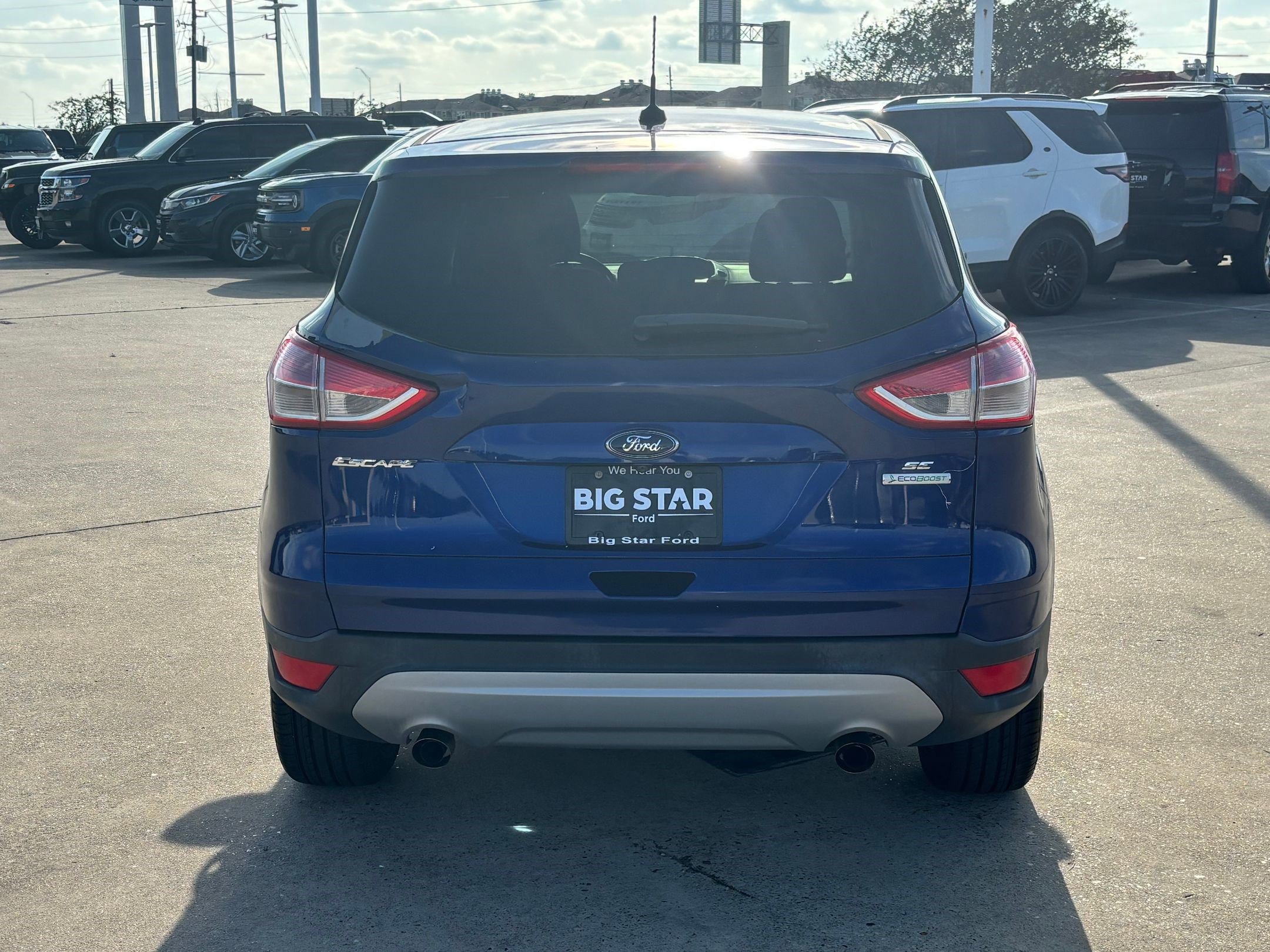 Big Star Ford is delighted to offer this wonderful 2016 Ford Escape. Deep Impact Blue SE FWD Recent Arrival! Odometer is 6110 miles below market average! 22/30 City/Highway MPG This vehicle is equipped with Equipment Group 200A, 3.21 Axle Ratio, 4-Wheel Disc Brakes, 6 Speakers, ABS brakes, Air Conditioning, Alloy wheels, AM/FM radio: SiriusXM, Brake assist, Bumpers: body-color, CD player, Cloth Buckets w/60/40 Split Rear Seat, Compass, Delay-off headlights, Driver door bin, Driver vanity mirror, Dual front impact airbags, Dual front side impact airbags, Electronic Stability Control, Emergency communication system: 911 Assist, Exterior Parking Camera Rear, Four wheel independent suspension, Front anti-roll bar, Front Bucket Seats, Front Center Armrest, Front fog lights, Front reading lights, Fully automatic headlights, Illuminated entry, Knee airbag, Low tire pressure warning, Occupant sensing airbag, Outside temperature display, Overhead airbag, Overhead console, Panic alarm, Passenger door bin, Passenger vanity mirror, Power door mirrors, Power driver seat, Power steering, Power windows, Radio data system, Radio: AM/FM Single CD/MP3, Rear anti-roll bar, Rear seat center armrest, Rear window defroster, Rear window wiper, Remote keyless entry, Speed control, Speed-sensing steering, Split folding rear seat, Steering wheel mounted audio controls, SYNC Communications & Entertainment System, Tachometer, Telescoping steering wheel, Tilt steering wheel, Traction control, Trip computer, Variably intermittent wipers, and Wheels: 17 Alloy Sparkle Silver Painted Alloy. Call our Internet team at 346-536-8768 for a VIP appointment. Stop by today for an exceptional car buying experience. Located at 17717 South Freeway, Manvel, TX 77578. After the sale of a vehicle, it may take up to 72 hours for a vehicle to be removed from this site. Please verify the accuracy of the vehicle's information with the dealership and sales manager. Price does not include tax, title, license fees, or dealer installed items. It is the sole responsibility of the customer to check for installed items and availability of vehicles. All efforts are made to ensure accurate listings, but errors do occur. Please see dealer for more details.