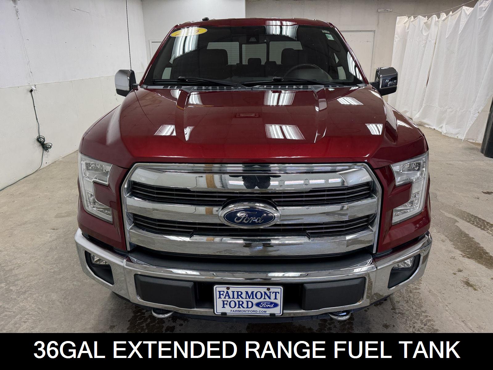 Welcome to Fairmont Ford! Great Choice on this 2016 Ford F-150 King Ranch. Engine: 3.5L V6 ECOBOOST, Ruby Red Metallic Tinted Clearcoat. King Ranch Chrome Appearance Package. Equipment Group 601A Luxury ($3,190 value). Inflatable Rear Safety Belts. Blind Spot Information System (BLIS). Power-Deployable Running Boards. Electronic 6-Speed Automatic Transmission. Sony Single CD Radio with HD and SiriusXM Satellite. Tailgate Step with Tailgate Lift Assist. King Ranch Leather Bucket Seats. Multi-Contour Driver and Passenger Seats. Pro Trailer Backup Assist. Upgraded Front Stabilizer Bar. Class IV Trailer Hitch Receiver. King Ranch Monochromatic Paint Package. Painted Body-Color Wheellip Molding. Ventilated front seats provide targeted cool air so you and your passenger can get comfortable quicker in hot weather. Cruise control with steering wheel mounted controls helps minimize driver fatigue and improve overall fuel economy. Keyfob engine start control allows you to start your vehicle's engine from the key fob, ensuring your ride is ready to go when you get in. The rear camera helps you see obstacles and hazards you otherwise couldn't by showing enhanced images of what is behind you. Brake assist uses the speed of the brake pedal's travel to sense panic braking, then applies all available power to boost your stopping power. The voice activated integrated navigation system will guide you to your destination.