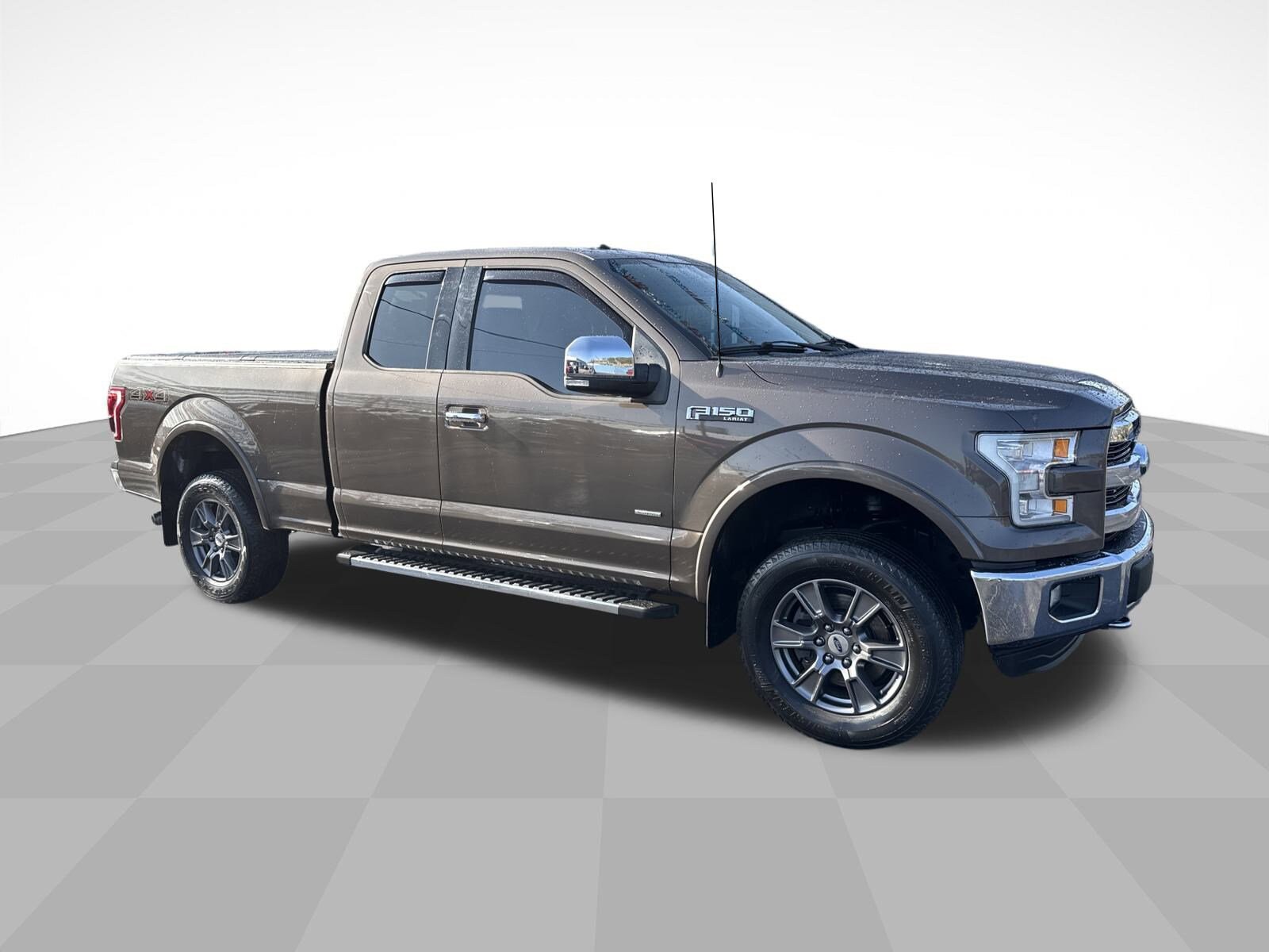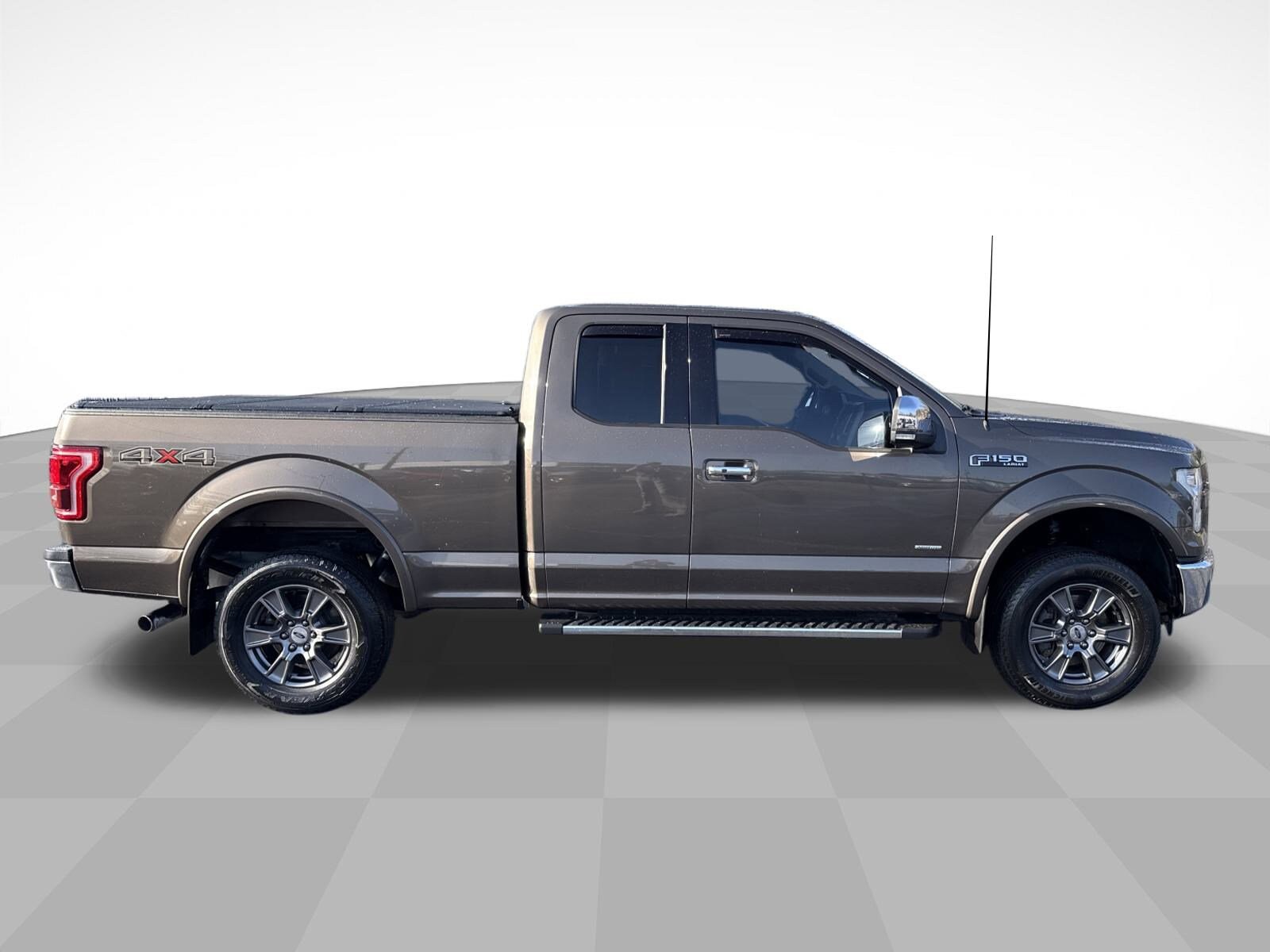 Caribou Metallic 2016 Ford F-150 Lariat 4WD 6-Speed Automatic Electronic 3.5L V6 4WD, 110V/400W Outlet, 18" Machined-Aluminum Wheels, 4-Wheel Disc Brakes, 7 Speakers, ABS brakes, Adjustable pedals, Air Conditioning, Alloy wheels, AM/FM radio: SiriusXM, Auto High Beam w/Rain-Sensing Windshield Wipers, Auto-dimming door mirrors, Auto-dimming Rear-View mirror, Automatic temperature control, Auxiliary Transmission Oil Cooler, BLIS Blind Spot Information System, Brake assist, Bumpers: chrome, CD player, Chrome 3-Bar Style Grille w/Chrome Surround, Chrome Angular Step Bars, Chrome Door & Tailgate Handles w/Body-Color Bezel, Chrome Skull Caps on Exterior Mirrors, Class IV Trailer Hitch Receiver, Compass, Delay-off headlights, Driver door bin, Driver vanity mirror, Dual front impact airbags, Dual front side impact airbags, Electronic Stability Control, Equipment Group 502A Luxury, Extended Range 36 Gallon Fuel Tank, Exterior Parking Camera Rear, Front anti-roll bar, Front Center Armrest w/Storage, Front dual zone A/C, Front fog lights, Front reading lights, Front wheel independent suspension, Fully automatic headlights, GVWR: 6,500 lbs Payload Package, Heated door mirrors, Heated front seats, Heated Steering Wheel, Illuminated entry, Lariat Chrome Appearance Package, Leather-Trimmed 40/20/40 Front Seat, Leather-Trimmed Bucket Seats, LED Side-Mirror Spotlights, Low tire pressure warning, Memory seat, Occupant sensing airbag, Outside temperature display, Overhead airbag, Overhead console, Panic alarm, Passenger door bin, Passenger vanity mirror, Pedal memory, Power door mirrors, Power driver seat, Power Glass Sideview Mirr w/Body-Color Skull Caps, Power passenger seat, Power steering, Power Tilt/Telescoping Steering Column w/Memory, Power windows, Pro Trailer Backup Assist, Quad Beam LED Headlamps & Taillamps, Radio data system, Radio: Single-CD w/SiriusXM Satellite, Radio: Sony Single CD w/HD & SiriusXM Satellite, Rear step bumper, Rear window defroster, Remote keyless entry, Remote Start System System with remote tailgate Release. . . .