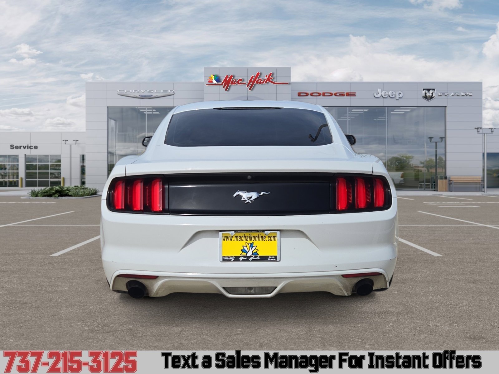 Oxford White 2016 Ford Mustang EcoBoost RWD 6-Speed Manual EcoBoost 2.3L I4 GTDi DOHC Turbocharged VCT. Recent Arrival! Odometer is 35998 miles below market average! 22/31 City/Highway MPG. Awards: * 2016 KBB.com 10 Coolest New Cars Under $25,000 * 2016 KBB.com Brand Image Awards. Mac Haik Dodge is conveniently located close to Austin, Georgetown, Round Rock, Pflugerville, Hutto, Taylor, Temple, Belton, Fort Hood, and surrounding areas.
