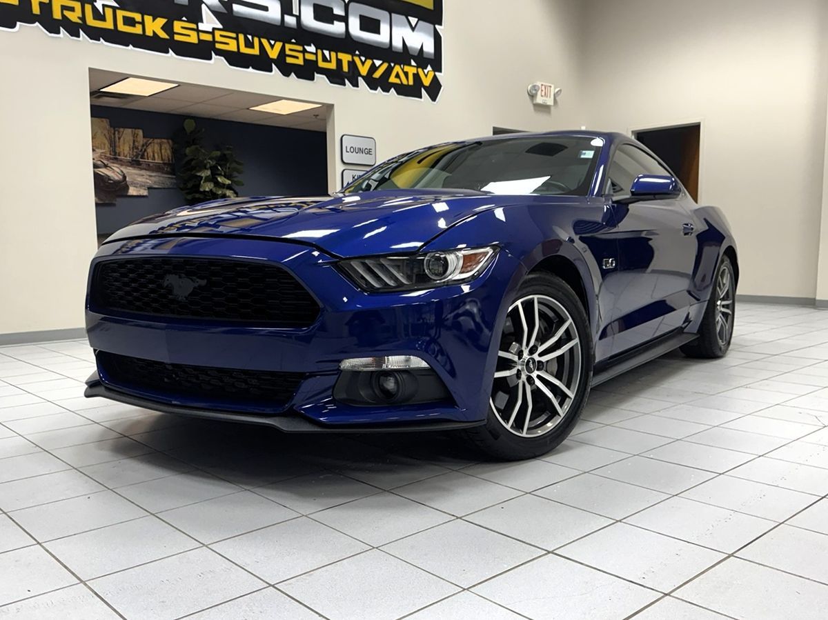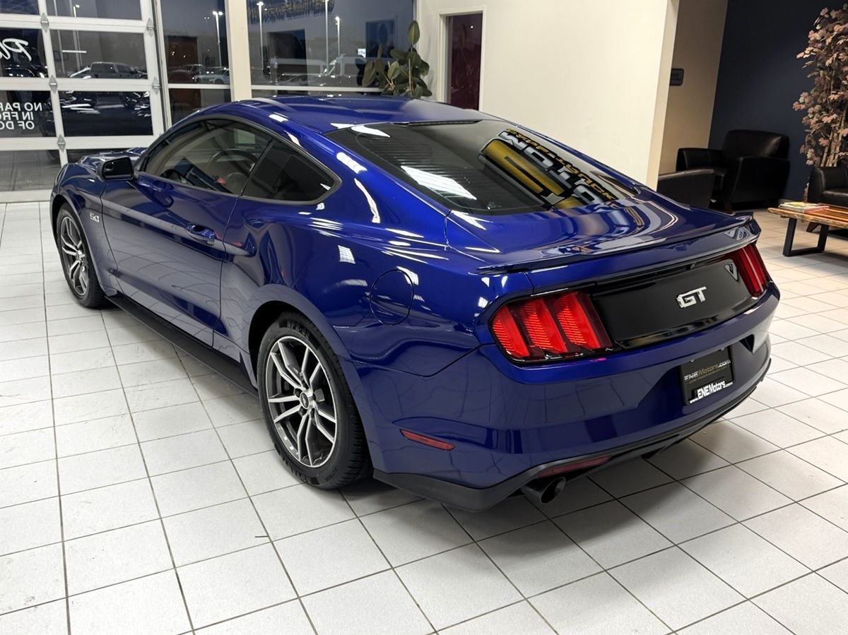 The 2016 Ford Mustang 2dr Fastback GT is a stunning blend of performance and style, encapsulated in the striking Deep Impact Blue Metallic exterior. This commanding color sets the tone for the exhilarating driving experience that lies ahead. The sleek lines of the fastback silhouette, complemented by bold front fascia, create an imposing presence on the road. Under the hood, you'll find the robust 5.0L Ti-VCT V8 engine, which churns out impressive horsepower. This powerhouse engine ensures thrilling acceleration and a heart-racing ride every time you hit the gas pedal. Whether navigating city streets or cruising the open highway, the Mustang GT delivers performance with precision and flair. Inside, the cabin is thoughtfully designed, featuring Ebony leather-trimmed seats that offer both comfort and sophistication. The driver-focused cockpit is equipped with intuitive controls and advanced technology to enhance your driving experience. This Mustang not only caters to the performance enthusiast but also provides a luxurious ride for everyday practicality.