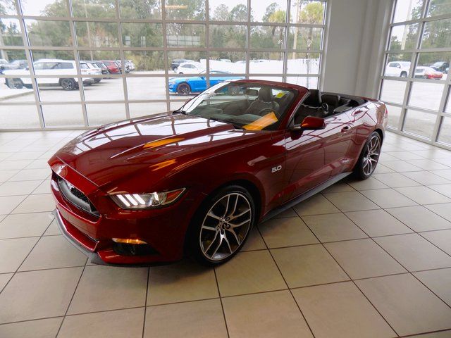 2016 Ford Mustang GT Premium Ruby Red Metallic 5.0L V8 Ti-VCT RWD CARFAX One-Owner. Odometer is 6001 miles below market average! 4-Wheel Disc Brakes, 9 Speakers, ABS brakes, Alloy wheels, Auto-dimming Rear-View mirror, Automatic temperature control, Block heater, Climate Controlled Heated/Cooled Front Seats, Convertible roof lining, Emergency communication system: 911 Assist, Equipment Group 400A, Exterior Parking Camera Rear, Front anti-roll bar, Front dual zone A/C, Front fog lights, Fully automatic headlights, Garage door transmitter, Heated door mirrors, High-Intensity Discharge Headlights, Leather Bucket Seats, Outside temperature display, Power convertible roof, Power door mirrors, Power driver seat, Power passenger seat, Power windows, Rear anti-roll bar, Remote keyless entry, Reverse Sensing System, Security system, Speed-sensing steering, Speed-Sensitive Wipers, Spoiler, Steering wheel mounted audio controls, SYNC 3 Communications & Entertainment System, Turn signal indicator mirrors, Voice-Activated Touch-Screen Navigation System.