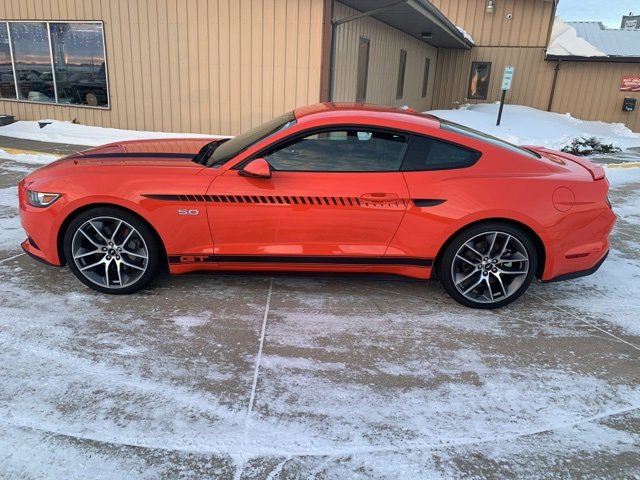 2016 Ford Mustang GT Premium Competition Orange RWD 5.0L V8 Ti-VCT 6-Speed Automatic with Select-Shift. Odometer is 48874 miles below market average! We are committed to serving our friends and customers and look forward to hearing from you! We are a small town dealer who gives you the personal touch! We value each and every customer and will treat you well. We have a 5 of 5 Score on Dealer Rater and Car Gurus- a 4.7 of 5 on Google! To contact us by phone call 1-800-570-7337 or 701-538-7337. Come to see our Specials at www.wolfeford.com.