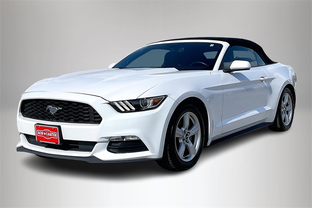 Odometer is 10887 miles below market average! 19/28 City/Highway MPG Here at Ron Carter you get the deal you see. We do not advertise it if you don't qualify for it. Honest, Straight Forward deals you can trust. Ron Carter Ford is very proud to offer this good-looking 2016 Ford Mustang V6. Well equipped with 4-Wheel Disc Brakes, 6 Speakers, ABS brakes, Air Conditioning, Alloy wheels, AM/FM radio, AM/FM Stereo w/Single CD Player, Auto-dimming Rear-View mirror, Brake assist, Bumpers: body-color, CD player, Cloth Bucket Seats, Compass, Convertible roof lining, Delay-off headlights, Driver door bin, Driver vanity mirror, Dual front impact airbags, Dual front side impact airbags, Electronic Stability Control, Emergency communication system: 911 Assist, Exterior Parking Camera Rear, Four wheel independent suspension, Front anti-roll bar, Front Bucket Seats, Front Center Armrest, Front reading lights, Fully automatic headlights, Glass rear window, High-Intensity Discharge Headlights, Illuminated entry, Knee airbag, Low tire pressure warning, Occupant sensing airbag, Outside temperature display, Overhead console, Panic alarm, Passenger door bin, Passenger vanity mirror, Power convertible roof, Power door mirrors, Power steering, Power windows, Radio data system, Rear anti-roll bar, Rear window defroster, Remote keyless entry, Security system, Speed control, Speed-sensing steering, Speed-Sensitive Wipers, Steering wheel mounted audio controls, SYNC Communications & Entertainment System, Tachometer, Telescoping steering wheel, Tilt steering wheel, Traction control, Trip computer, Variably intermittent wipers, Voltmeter, and Wheels: 17" x 7.5" Sparkle Silver Painted Aluminum.