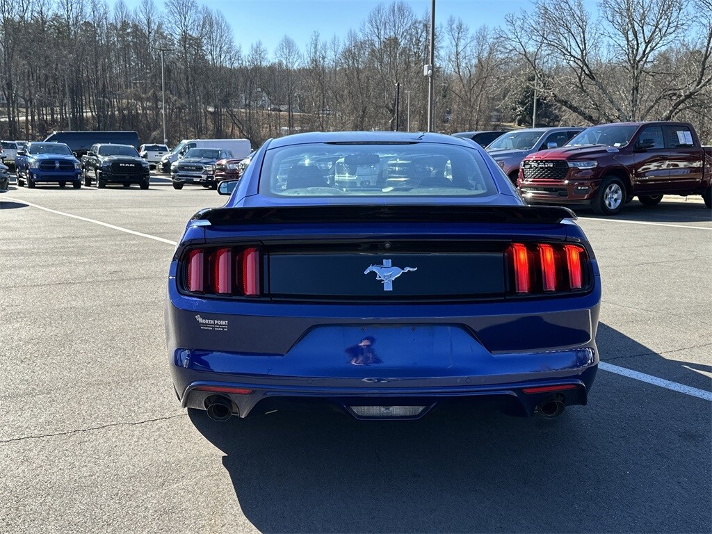 Thank you for viewing this Pre-owned 2016 Ford Mustang 2dr Fastback V6 offered in Blue Metallic with the Ebony interior! This vehicle provides excellent fuel economy with 28 MPG Highway! This Mustang comes well-equipped with the following options: Backup Camera, HID Headlights, Security System, Tire Pressure Monitor, Auxiliary Audio Input, Bluetooth, CD Player, MP3 Player, Steering Wheel Audio Controls, Video System, Bucket Seats, Leather Steering Wheel, Keyless Entry, Keyless Start, Power Door Locks, Power Mirrors, Power Windows, Aluminum Wheels, Locking/Limited Slip Differential, Regular Unleaded V-6 3.7 L/227 Engine, Transmission and much more! North Point believes you deserve an exceptional pre-owned Ford purchase experience! Get it from a dealer who truly cares by visiting North Point Chrysler Dodge Fiat Jeep Ram at 7726 North Point BLVD, Winston-Salem, NC 27106. The Showroom Hours are 9am-7pm Monday-Friday, 9am-6pm Saturdays, and Closed Sundays. Or visit us anytime at www.NorthPointCJD.com! All Pre-Owned Vehicle pricing includes $1,500 finance cash. See Disclaimer for terms and conditions.