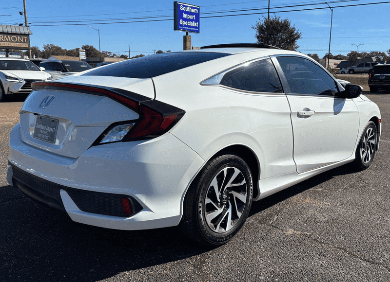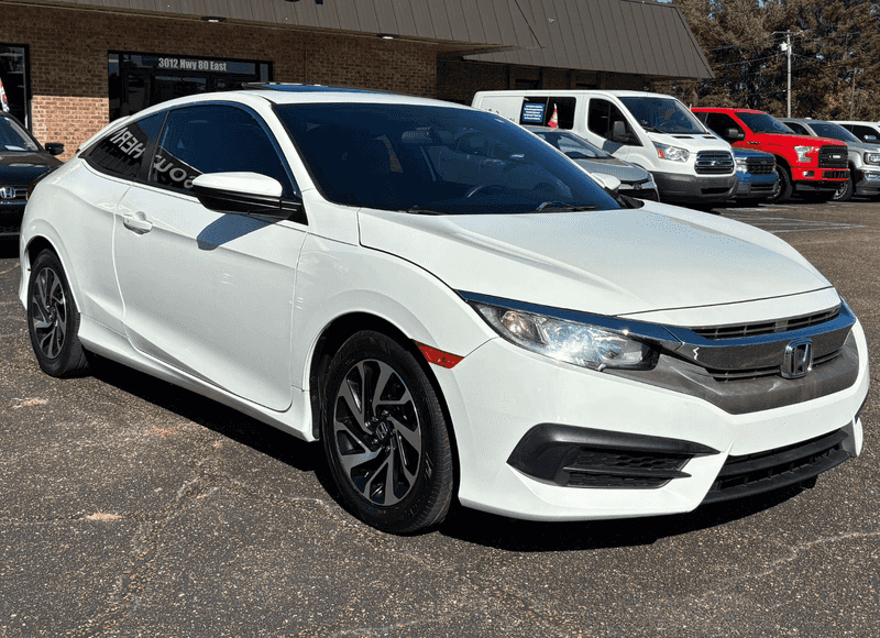 2016 Honda Civic LX-P Coupe CVT - White Exterior, Beige and Black Interior, 2.0L L4 DOHC 16V Gasoline Engine. The CVT (continuously variable transmission) is standard on the LX-P trim, Fuel economy rated at around 31/41/35 mpg (city/highway/combined) for the CVT version, More rigid body architecture: use of high-strength steel, improved chassis for better ride and handling, Audio & connectivity: basic infotainment includes Bluetooth streaming audio, USB/Aux input, Smart Entry & Push-Button Start included on LX-P, Moonroof (one-touch power with tilt) included on LX-P, Multi-angle rear-view camera with guidelines, 60/40 split-folding rear seatback for added cargo flexibility, Trunk capacity ~12.1 cu-ft (for the coupe) with wide opening & lower lift-over height, “Eco Assist” mode to promote fuel-efficient driving. Asking only $16,950 cash or In-house financing options available with as low as $4,500 down. Call us at 601-939-9195 or Email us at info@southernimportspecialist.com for more information.