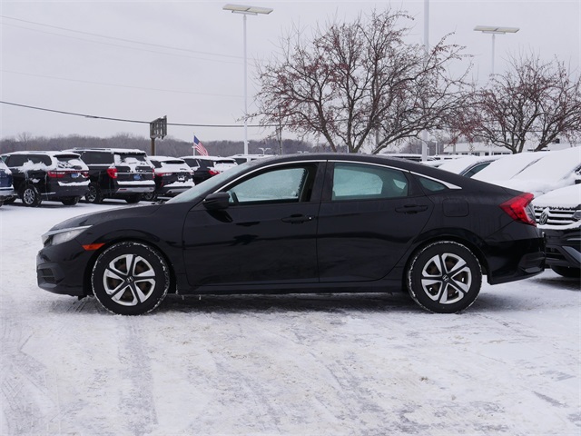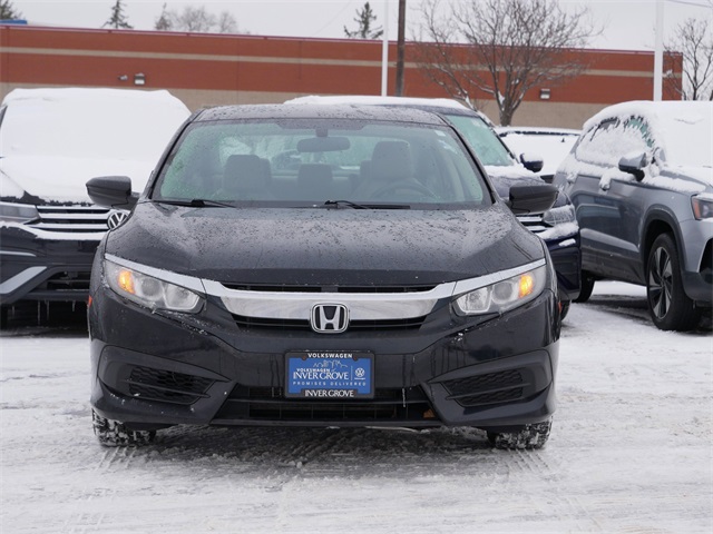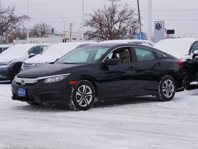 Rearview camera system, Bluetooth, Black w/Cloth Seat Trim, Cloth Seat Trim, Exterior Parking Camera Rear, Radio: 160-Watt AM/FM Audio System, Reclining Front Bucket Seats. Black 2016 Honda Civic LX FWD 2.0L I4 DOHC 16V i-VTEC CVT. Recent Arrival! 31/41 City/Highway MPG. Kelley Blue Book Brand Image Awards are based on the Brand Watch study from Kelley Blue Book Market Intelligence. Award calculated among non-luxury shoppers. For more information, visit www.kbb.com. Kelley Blue Book is a registered trademark of Kelley Blue Book Co., Inc. Our Promise to You: At Volkswagen of Inver Grove, we use third party software daily to compare our vehicle pricing to all other dealer and private party listings on the internet in the greater Minneapolis St. Paul Market area. We will post one low price, plain and simple-always. At Volkswagen of Inver Grove you get a great valued priced vehicle right up front! Additionally, we recondition our vehicles to the highest standards. We are committed to making your car buying experience easy and earning your business for life! Please call us or email us to schedule a test drive today! We sell and service all makes and models of pre-owned, used vehicles, used cars, used trucks, used sport utility, Ford, Chevrolet / Chevy, Honda, Toyota, Porsche, Land Rover, Jaguar, INFINITI, Audi, Nissan, Mazda, Hyundai, Chrysler, Jeep, Dodge, Ram, SRT, Mitsubishi, Lexus, Kia, Volkswagen, Mini, BMW, Mercedes, Fiat, Volvo, GMC, Cadillac, Lincoln as well as other brands.