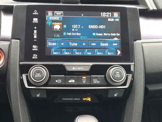 Leather, 10 Speakers, 17" Alloy Wheels, 4-Wheel Disc Brakes, ABS brakes, Air Conditioning, Alloy wheels, AM/FM radio: SiriusXM, Apple CarPlay/Android Auto, Auto-dimming Rear-View mirror, Automatic temperature control, Brake assist, Bumpers: body-color, Compass, Delay-off headlights, Driver door bin, Driver vanity mirror, Dual front impact airbags, Dual front side impact airbags, Electronic Stability Control, Emergency communication system: HondaLink Assist, Exterior Parking Camera Rear, Four wheel independent suspension, Front anti-roll bar, Front Bucket Seats, Front Center Armrest, Front dual zone A/C, Front fog lights, Front reading lights, Fully automatic headlights, Heated door mirrors, Heated front seats, Heated rear seats, Illuminated entry, Leather Seat Trim, Leather Shift Knob, Low tire pressure warning, Navigation System, Occupant sensing airbag, Outside temperature display, Overhead airbag, Panic alarm, Passenger door bin, Passenger vanity mirror, Power door mirrors, Power driver seat, Power moonroof, Power passenger seat, Power steering, Power windows, Radio data system, Radio: 450-Watt AM/FM/HD/SiriusXM Audio System, Rain sensing wipers, Rear anti-roll bar, Rear seat center armrest, Rear window defroster, Reclining Heated Front Bucket Seats, Remote keyless entry, Security system, Speed control, Speed-sensing steering, Speed-Sensitive Wipers, Split folding rear seat, Spoiler, Steering wheel mounted audio controls, Tachometer, Telescoping steering wheel, Tilt steering wheel, Traction control, Trip computer, Turn signal indicator mirrors, Variably intermittent wipers. 2016 Honda Civic Touring Gray FWD 1.5L I-4 DI DOHC Turbocharged CVT.