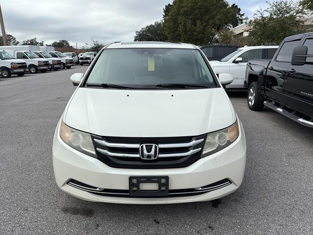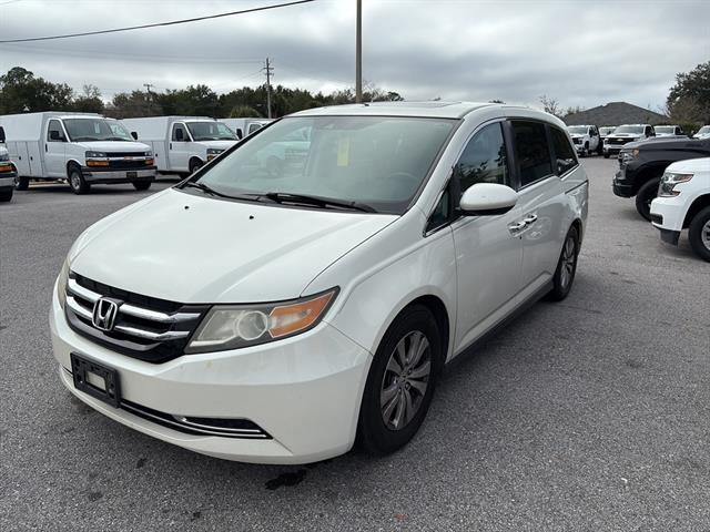 Discover comfort and versatility in this white 2016 Honda Odyssey EX-L, the ideal family minivan packed with premium features. Enjoy leather-trimmed upholstery, heated front seats, and a power moonroof for a touch of luxury. Stay connected with the dual infotainment screens, HondaLink, Bluetooth, and SiriusXM radio. Safety is a priority with pre-collision warning systems, blind spot camera, rearview monitor, lane deviation sensors, and a full suite of airbags. Convenience abounds with power sliding doors, a power liftgate, and proximity entry. The Odyssey's spacious cabin includes removable captain's chairs, folding third-row seating, rear air conditioning, and ample storage for every trip. The 3.5L V6 engine and 6-speed automatic transmission offer a smooth, responsive drive, while aluminum alloy wheels and a sleek exterior ensure you travel in style. Perfect for families and road trips, this Odyssey delivers reliability, comfort, and advanced features at an exceptional value. Schedule your test drive today and experience why the Honda Odyssey remains a top choice for minivans.