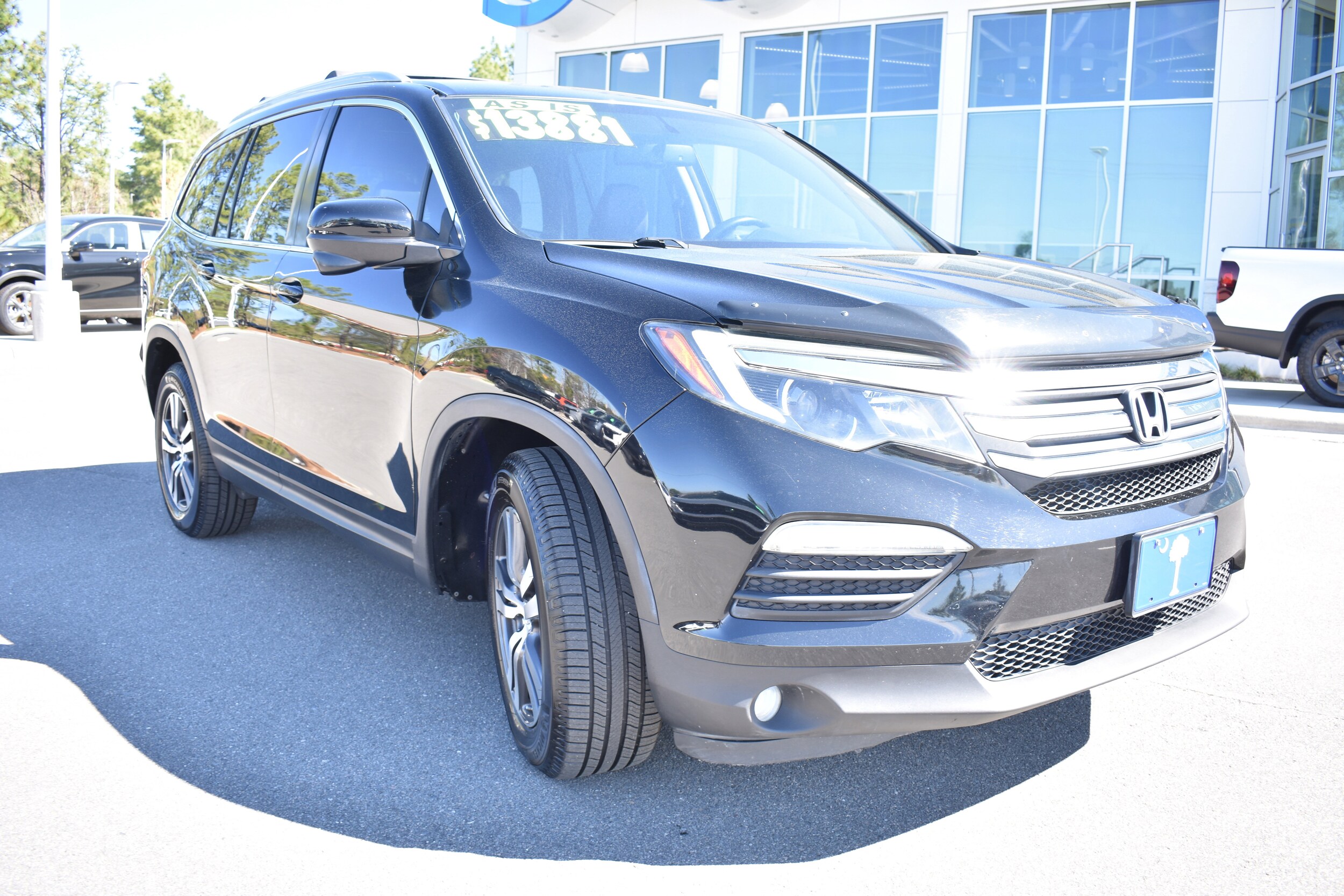 Priced below KBB Fair Purchase Price! Crystal Black Pearl 2016 Honda Pilot EX-L AWD 6-Speed Automatic 3.5L V6 24V SOHC i-VTEC 18" Alloy Wheels, 3rd row seats: split-bench, 4-Wheel Disc Brakes, 4.25 Axle Ratio, 7 Speakers, ABS brakes, Air Conditioning, Alloy wheels, AM/FM radio: SiriusXM, Auto-dimming Rear-View mirror, Automatic temperature control, Brake assist, Bumpers: body-color, Compass, Delay-off headlights, Dual front impact airbags, Dual front side impact airbags, Electronic Stability Control, Emergency communication system: HondaLink Assist, Exterior Parking Camera Rear, Four wheel independent suspension, Front anti-roll bar, Front dual zone A/C, Front fog lights, Fully automatic headlights, Garage door transmitter: HomeLink, Heated door mirrors, Heated Front Bucket Seats, Heated front seats, Illuminated entry, Leather Shift Knob, Leather-Trimmed Seats, Low tire pressure warning, Occupant sensing airbag, Outside temperature display, Overhead airbag, Panic alarm, Power door mirrors, Power driver seat, Power Liftgate, Power moonroof, Power passenger seat, Power steering, Power windows, Radio data system, Radio: AM/FM Audio System, Rear air conditioning, Rear anti-roll bar, Rear window defroster, Rear window wiper, Remote keyless entry, Security system, SiriusXM Radio, Speed control, Speed-sensing steering, Speed-Sensitive Wipers, Split folding rear seat, Spoiler, Steering wheel mounted audio controls, Tachometer, Telescoping steering wheel, Tilt steering wheel, Traction control, Trip computer, Variably intermittent wipers. Recent Arrival! 18/26 City/Highway MPG Awards: * ALG Residual Value Awards, Residual Value Awards * 2016 KBB.com 16 Best Family Cars * 2016 KBB.com Best Buy Awards * 2016 KBB.com Best Buy Awards Finalist * 2016 KBB.com Brand Image Awards Kelley Blue Book Brand Image Awards are based on the Brand Watch(tm) study from Kelley Blue Book Market Intelligence. Award calculated among non-luxury shoppers. For more information, visit www.kbb.com. Kelley Blue Book is a registered trademark of Kelley Blue Book Co., Inc. "It's Easier Here" at Leith Aberdeen. We're proud to serve Sanford, Southern Pines, Pinehurst, and Fayetteville North Carolina. With one of the largest sources of inventory in North Carolina combined with commitment to serve, Leith gets you on the road with a pre-owned vehicle with a no-hassle and no-pressure environment.