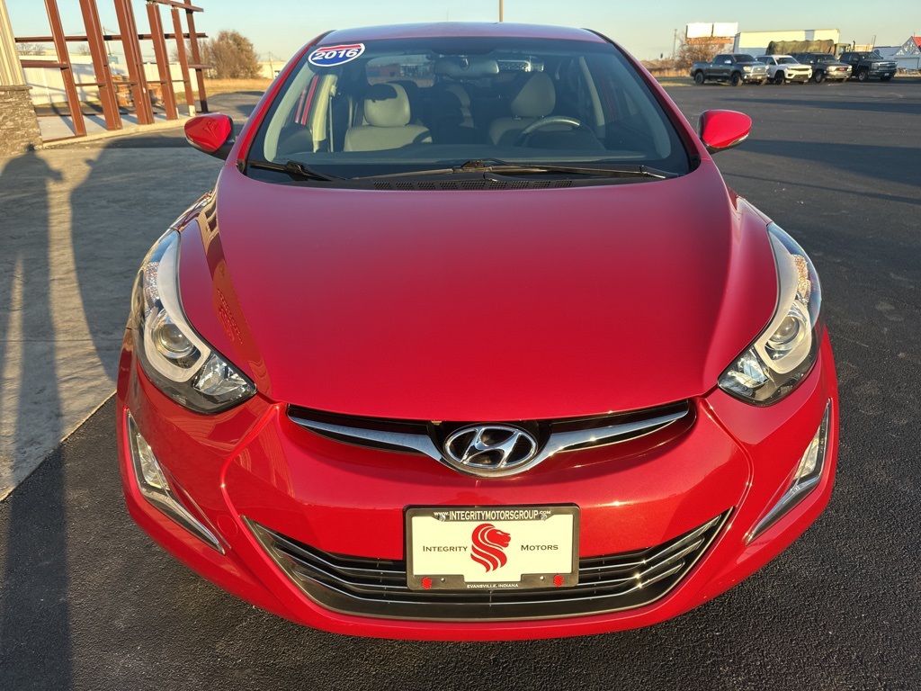 Scarlet Red Pearl 2016 Hyundai Elantra Limited FWD 6-Speed Automatic with Shiftronic 1.8L 4-Cylinder DOHC 16V Dual CVVT. Recent Arrival! Odometer is 51809 miles below market average! 28/38 City/Highway MPG. Awards: 2016 KBB.com 10 Best Used Compact Cars Under $15,000, 2016 KBB.com Best Buy Awards Finalist, 2016 KBB.com 5-Year Cost to Own Awards. All of our vehicles are Carfax certified and carefully inspected to provide you with a carefree car buying experience. When you buy with Integrity Motors you can feel good about your purchase knowing that each vehicle was hand picked and inspected like it was our own. Join the Pride and buy with Integrity! Vehicles featuring custom wheels or accessories may not have the cost included in the price, see dealer for details. Images, prices, and options shown, including vehicle color, trim, options, pricing and other specifications are subject to availability. Vehicle information deemed reliable but not guaranteed accurate. See dealer for any questions.