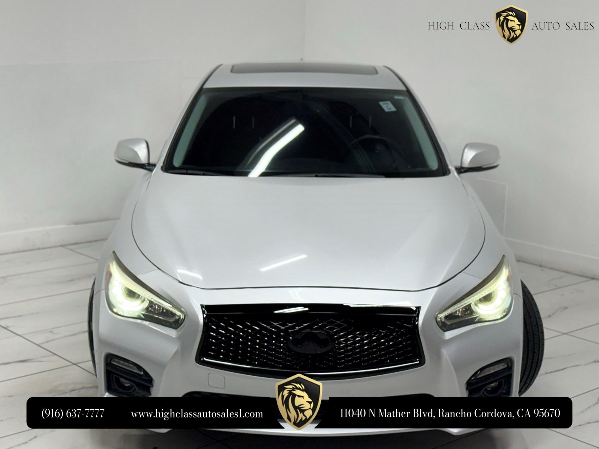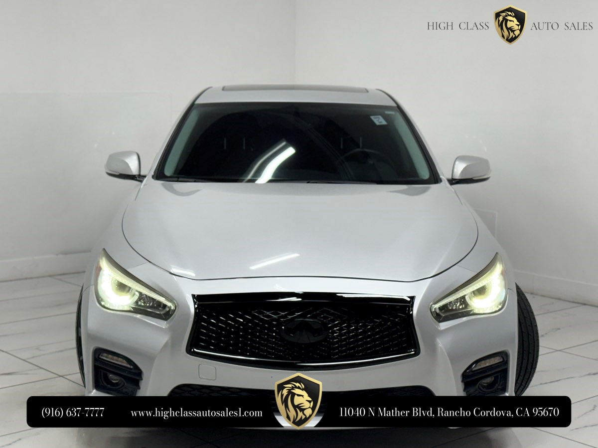 The 2016 INFINITI Q50 4dr Sdn 3.0t Red Sport 400 RWD is a striking blend of performance and luxury. With its sleek Liquid Platinum exterior, this vehicle commands attention on the road, showcasing both elegance and a hint of aggression. The Graphite interior provides a sophisticated and comfortable cabin, exuding refined design and meticulous craftsmanship. Under the hood, the Q50 is powered by a formidable 3.0L V6 engine, delivering an impressive 400 horsepower, ensuring every drive is exhilarating. Its responsive RWD setup is perfect for those who value dynamic handling and thrilling driving experiences. Enhanced by the distinctive red sport badge, this model highlights its superior performance credentials, setting it apart from the rest. Thoughtful additions such as splash guards help protect the vehicle’s finish while maintaining its sleek aesthetics. The cargo package offers practical storage solutions, enhancing the versatility of this luxury sedan. Included floor mats add to the interior's elegant feel, providing both style and functionality. This model is compliant with 50 state emissions, ensuring environmentally friendly performance without compromising on power.