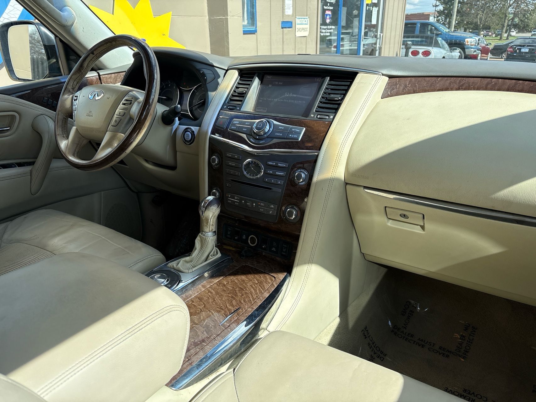 2016 INFINITI QX80 Base in Majestic White invites you to glide past the ordinary, its sun/moonroof spilling daylight into a spacious beige cabin where a heated steering wheel keeps your hands warm on crisp mornings. Blind-spot assist and intuitive navigation turn city commutes into effortless cruises, while the 400 HP V-8 delivers a smooth, confident pull whether you’re loading the family for a weekend getaway or loading gear for a day on the lake. It’s the kind of full-size SUV that makes every drive feel like a first-class escape.