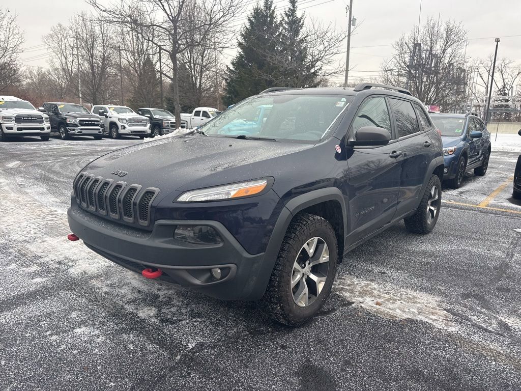 Recent Arrival! 2016 Jeep Cherokee Trailhawk True Blue Pearlcoat 1 Year Trial (Registration Required), 17" x 7.5" Aluminum Wheels, 3.52 Axle Ratio, 4-Wheel Disc Brakes, 4.08 Axle Ratio, 6 Speakers, 7 & 4 Pin Wiring Harness, 8.4" Touchscreen Display, ABS brakes, Accent Color Exterior Mirrors, Air Conditioning, All-Season Floor Mats, Alloy wheels, AM/FM radio: SiriusXM, Anti-whiplash front head restraints, Auxiliary Transmission Oil Cooler, Brake assist, Class III Receiver Hitch, Cloth/Leather/Vinyl Bucket Seats, Cold Weather Group, Compass, Delay-off headlights, Driver door bin, Driver vanity mirror, Dual front impact airbags, Dual front side impact airbags, Electronic Stability Control, Emergency communication system, Engine Block Heater, Engine Oil Cooler, Exterior Mirrors w/Heating Element, Four wheel independent suspension, Front anti-roll bar, Front Bucket Seats, Front Center Armrest, Front fog lights, Front reading lights, Fully automatic headlights, GPS Antenna Input, GPS Navigation, HD Radio, Heated Front Seats, Heated Steering Wheel, Illuminated entry, Integrated Voice Command w/Bluetooth, Jeep Rack Off Road Accessory Kit, Knee airbag, Leather Interior Group, Leather Shift Knob, Leather Trimmed Bucket Seats, Low tire pressure warning, Occupant sensing airbag, Off Road Suspension, Outside temperature display, Overhead airbag, Overhead console, Panic alarm, ParkView Rear Back-Up Camera, Passenger door bin, Passenger vanity mirror, Power 4-Way Driver Lumbar Adjust, Power 8-Way Driver Seat, Power door mirrors, Power Heated Mirrors, Power steering, Power windows, Quick Order Package 27E, Radio data system: SiriusXM", "Radio", "Radio", "Radio", "Smart", "Steering", "Automatic", "Manual".