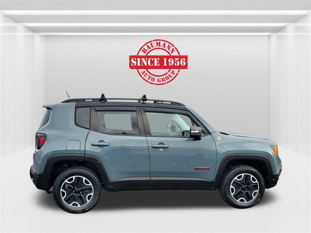 Recent Arrival! Odometer is 55359 miles below market average! Carfax One-Owner. Anvil 2016 Jeep Renegade Trailhawk 4D Sport Utility 2.4L I4 MultiAir 9-Speed 948TE Automatic 4WD. Baumann Auto Group Genoa - 419.855.8366. Clean Carfax report, Cold Weather Group, Heated Front Seats, Heated Steering Wheel, MOPAR All Weather Mats, MOPAR Bright Door Entry Guards, MOPAR Cargo Tray, MOPAR Interior Protection Package, Passive Entry Keyless Go Package, Passive Entry/Keyless Go, Quick Order Package 27E, Windshield Wiper De-Icer.