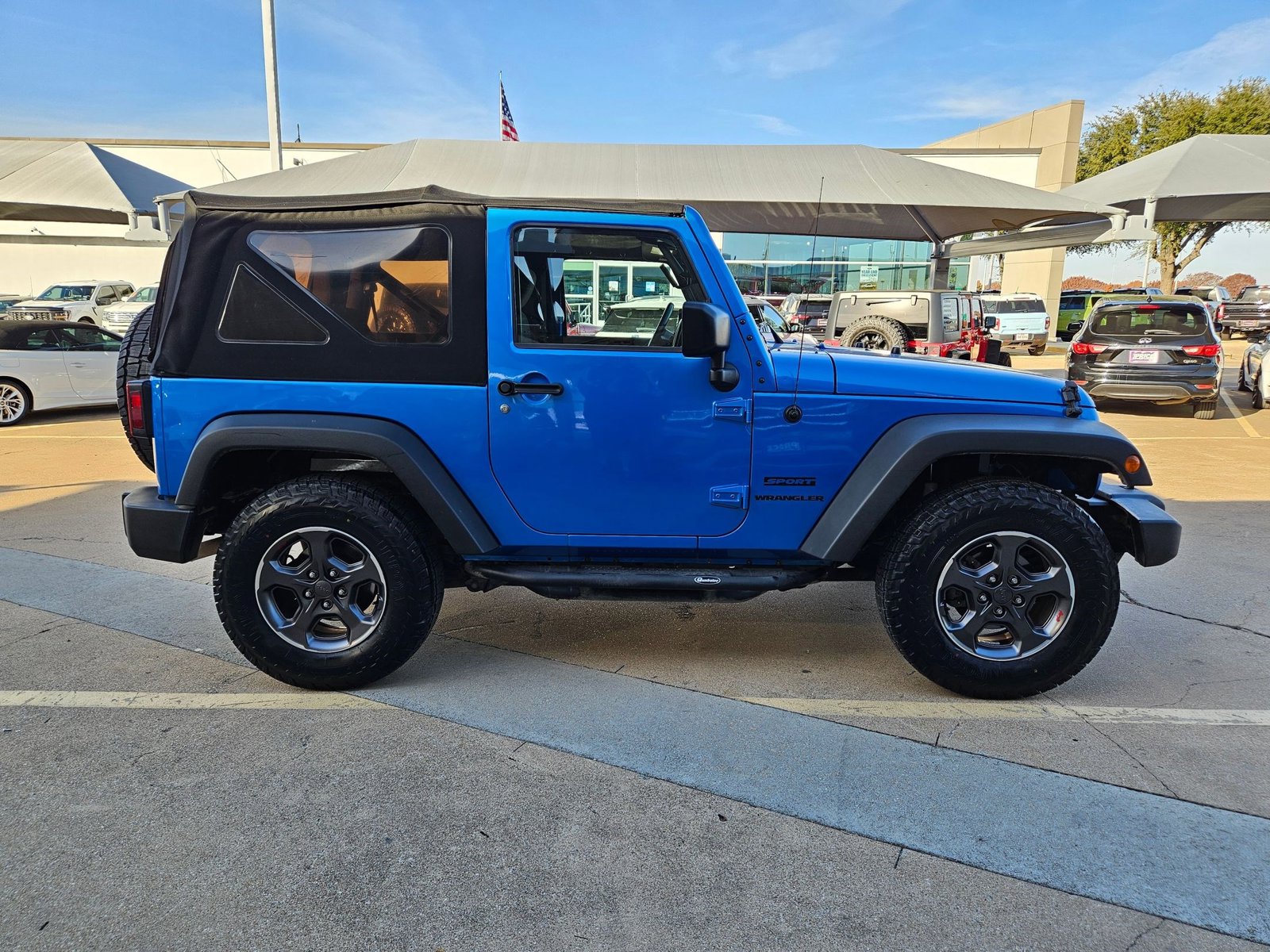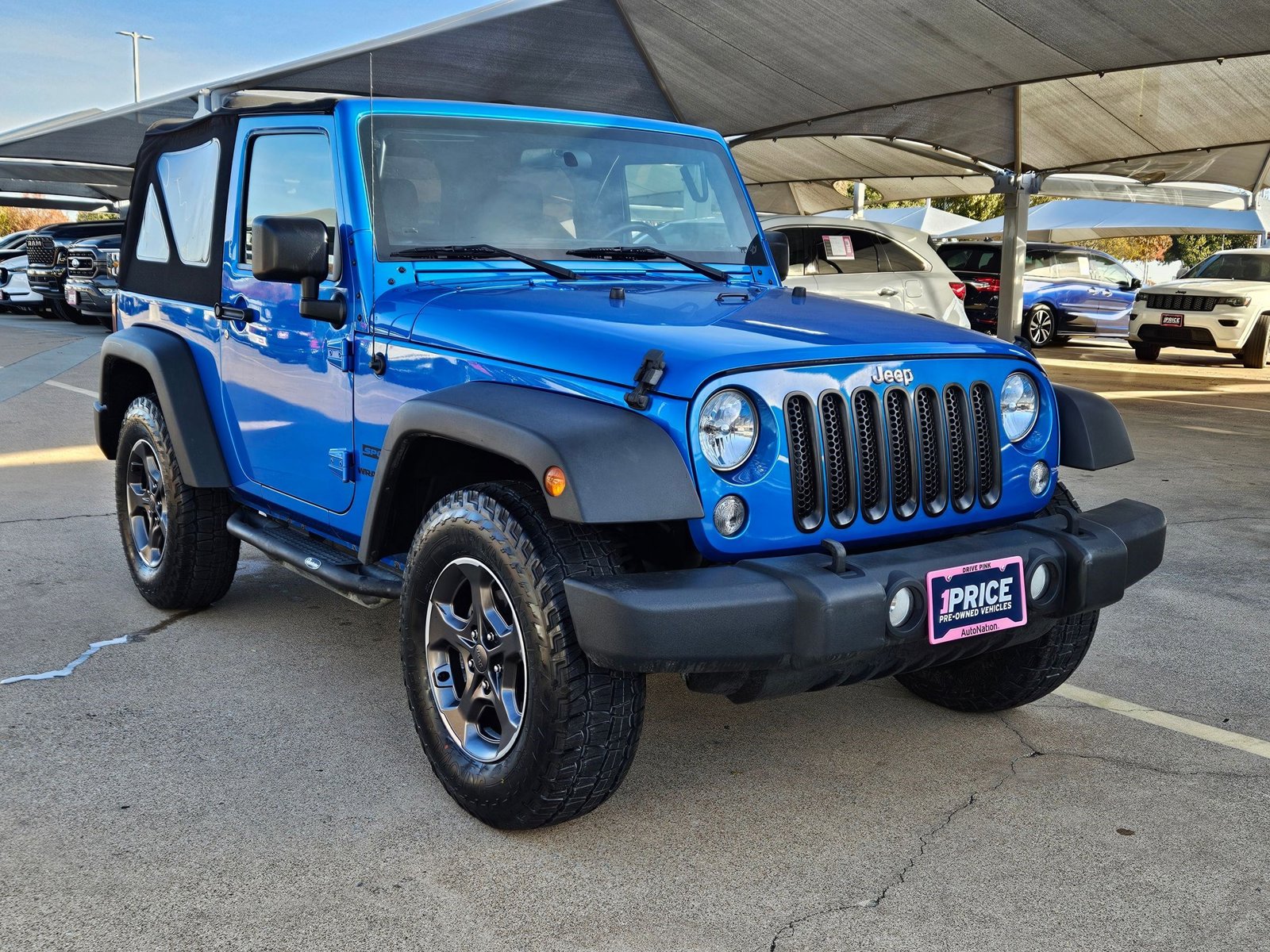 This 2016 Jeep Wrangler Sport is proudly offered by AutoNation Ford Arlington. This Jeep includes: Connectivity Group, wheels: 17" x 7.5" aluminum, 3.21 rear axle ratio, air conditioning, transmission: 5-speed automatic, Sirius satellite radio, Hydro Blue Pearlcoat exterior, black interior, premium black Sunrider soft top, and a V-6 engine. The Jeep Wrangler is the benchmark all other SUVs strive to meet. With exceptional power, towing and handling, this SUV can handle anything thrown at it. This 4WD-equipped vehicle will handle majestically on any terrain and in any weather condition your may find yourself in. The benefits of driving a Four Wheel Drive vehicle, such as this Jeep Wrangler Sport, include superior acceleration, improved steering, and increased traction and stability. It's not a misprint. And the odometer isn't broken. This is a very low mileage Jeep Wrangler. A rare find these days. More information about the 2016 Jeep Wrangler: With prices starting at a little under $23,000 with standard 4-wheel drive, the classic Wrangler is one of the best SUV values available. The 6-speed manual transmission helps the Wrangler achieve a decent 17 mpg city and 21 mpg highway rating. Jeep considers the Wrangler's off-road prowess integral to the brand and they continue to make one of the most capable 4-wheel drive vehicles available. Interesting features of this model are iconic styling, impressive off-road prowess, and 2- and 4-door configurations available.