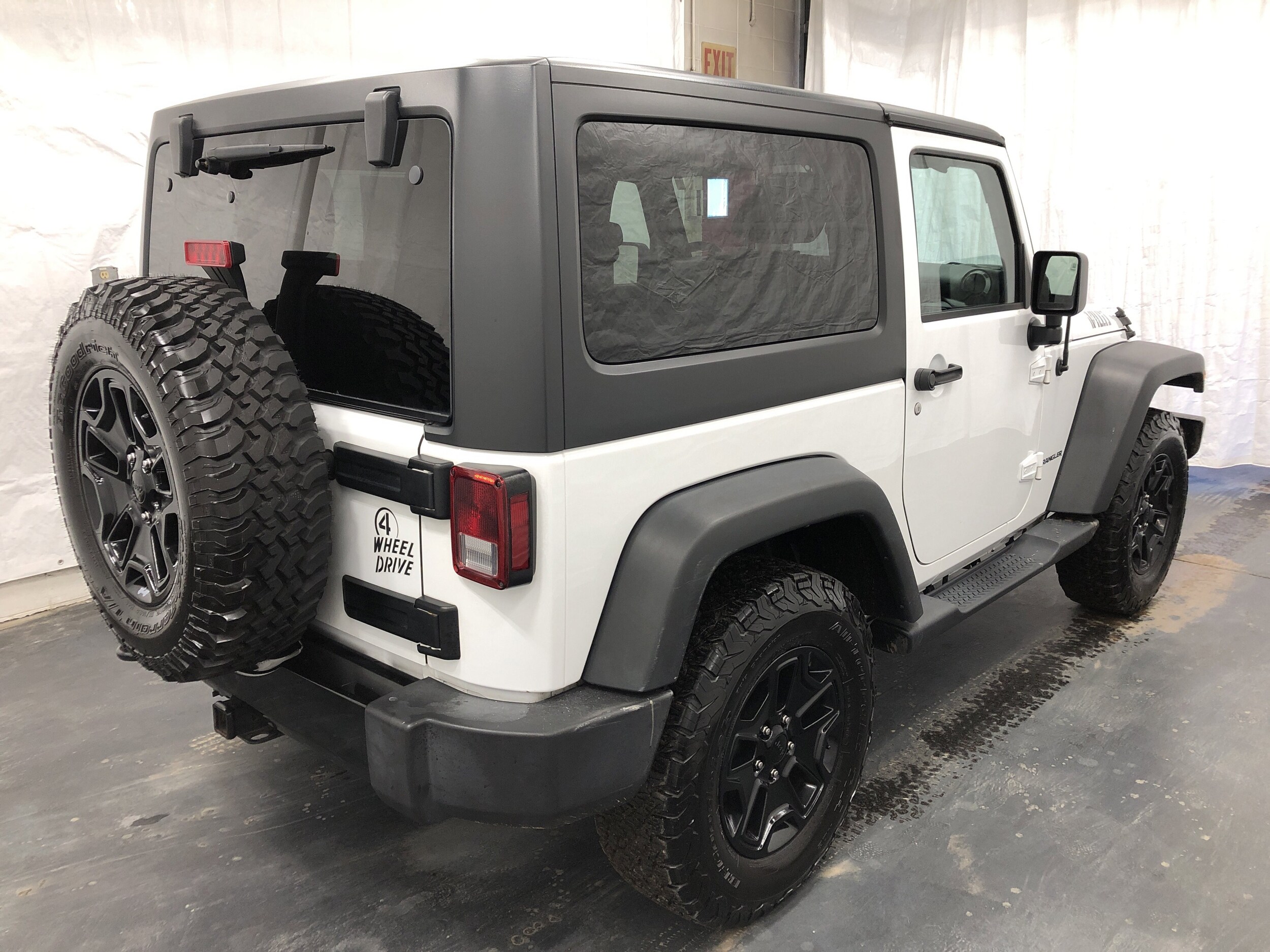 - Quick order package 24W Willys Wheeler -inc: Engine: 3.6L V6 24V VVT Transmission: 5-Speed Automatic Rear Passenger Assist Handles Kit Willys Wheeler Package Black Jeep Grille Badge 1-Yr SiriusXM Radio Service For More Info Call 888-539-7474 Air Conditioning Vehicle Information Center Remote USB Port Uconnect Voice Command w/Bluetooth Leather Wrapped Steering Wheel Chrome/Leather Wrapped Shift Knob Tire Pressure Monitoring Display 4-Wheel Drive Swing Gate Decal Willys Wheeler Grille Low Gloss Black Wrangler Decal Willys Hood Decal Rock Rails
