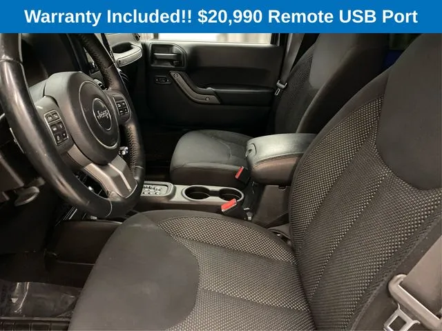 Discover the rugged appeal of this 2016 Jeep Wrangler, a standout SUV that combines iconic style with proven off-road capability. Finished in a sleek Black Clearcoat exterior complemented by a matching black interior, this used Jeep Wrangler is built to turn heads both on and off the pavement. Equipped with a powerful 3.6-liter V6 engine delivering 285 horsepower and 260 lb-ft of torque, it offers impressive performance for adventurous drivers. The 5-speed automatic transmission ensures smooth shifting, while the 4WD system provides superior traction in challenging terrains. With fog lights and a tow package, this Wrangler is ready to tackle outdoor excursions, whether you're hauling gear or navigating tough trails. Its four-door configuration comfortably seats five, making it a versatile choice for those who enjoy rugged versatility combined with everyday practicality. This used Jeep Wrangler stands out with its robust safety features and modern amenities. It is equipped with 4-wheel ABS, providing critical stopping power and enhanced control in diverse driving conditions. The vehicle’s durability and reliability make it an excellent choice for both daily commuting and. The interior boasts an impressive audio system with eight speakers, delivering crisp sound quality to enhance your driving experience. Additionally, an auxiliary audio input compatible with iPod and iPhone devices allows seamless integration of your favorite playlists. Step inside and you'll be surrounded by premium amenities.