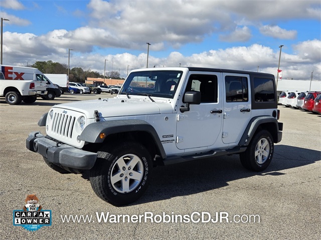 2016 Jeep Wrangler Unlimited Sport Bright White Clearcoat 4D Sport Utility 3.6L V6 24V VVT 4WD 4 X 4!, Bluetooth!, Remote keyless entry!, Tinted windows!, Premium alloy wheels, Touch screen radio!, Power windows & locks!, Steering wheel mounted audio controls!, Cruise control!, Trailer tow group, Receiver hitch. We appreciate your interest in this used vehicle, for sale at Five Star CDJR in Warner Robins. We sell and service all Makes and models including, Toyota, Ford, Honda, Chevrolet, Dodge, Jeep, Ram, Hyundai, Kia, Lexus, Acura, and many more. We proudly serve the Warner Robins, Macon, Dublin, Perry, Cochran, Vienna, Cordele and Columbus areas with the best pricing on used cars. We ensure you get a great deal through market research tools like KBB to find the right price for your vehicle. Used car buying doesn’t have to be a scary experience! Let our sale consultants help you find the perfect ride at and affordable cost at Five Star CDJR Warner Robins.