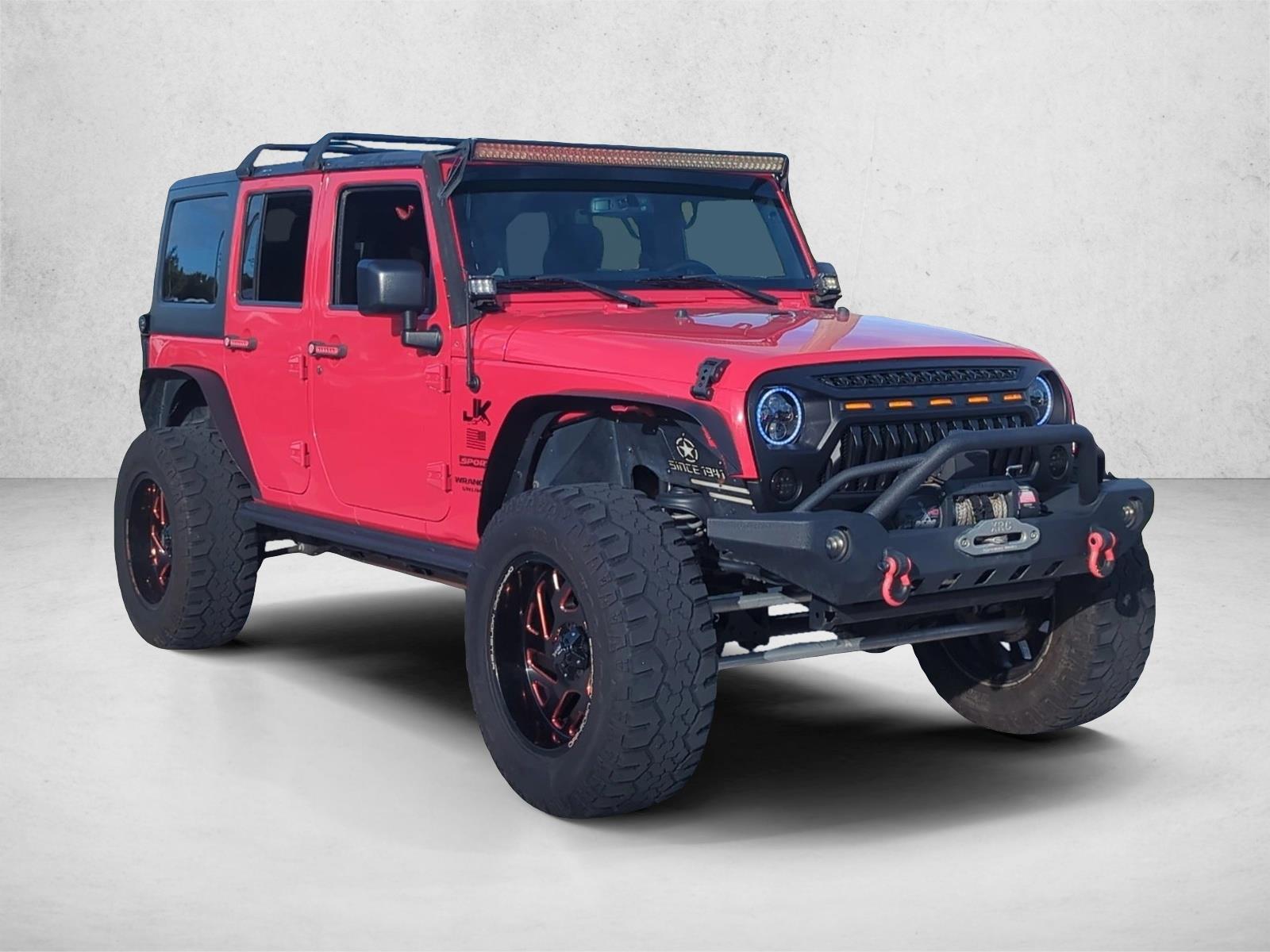 This Jeep includes: Connectivity Group Transmission: 5-Speed Automatic (W5A580) Wheels: 17 Engine: 3.6L V6 24V VVT (STD) Tubular Side Steps Black, cloth seats with adjustable head restraints Firecracker Red Clearcoat Sirius Satellite Radio Black 3-Piece Hard Top Radio: 430 CD Player AM/FM Stereo Auxiliary Audio Input Hard Disk Drive Media Storage MP3 Capability 3.21 Rear Axle Ratio (STD). In their original incarnation, SUVs were chiefly owned by folks who valued utility above sport. Not anymore! The Jeep Wrangler Unlimited Sport redefines the SUV and makes the perfect all around family companion. When Jeep created this vehicle with 4 wheel drive, they immediately enhanced the performance ability. Easily switch between two and four wheel drive to take advantage of the improved traction. More information about the 2016 Jeep Wrangler Unlimited: With prices starting at a little under $23,000 with standard 4-wheel drive, the classic Wrangler is one of the best SUV values available. The 6-speed manual transmission helps the Wrangler achieve a decent 17 mpg city and 21 mpg highway rating. Jeep considers the Wrangler's off-road prowess integral to the brand and they continue to make one of the most capable 4-wheel drive vehicles available. This model sets itself apart with 2- and 4-door configurations available, impressive off-road prowess, and iconic styling.