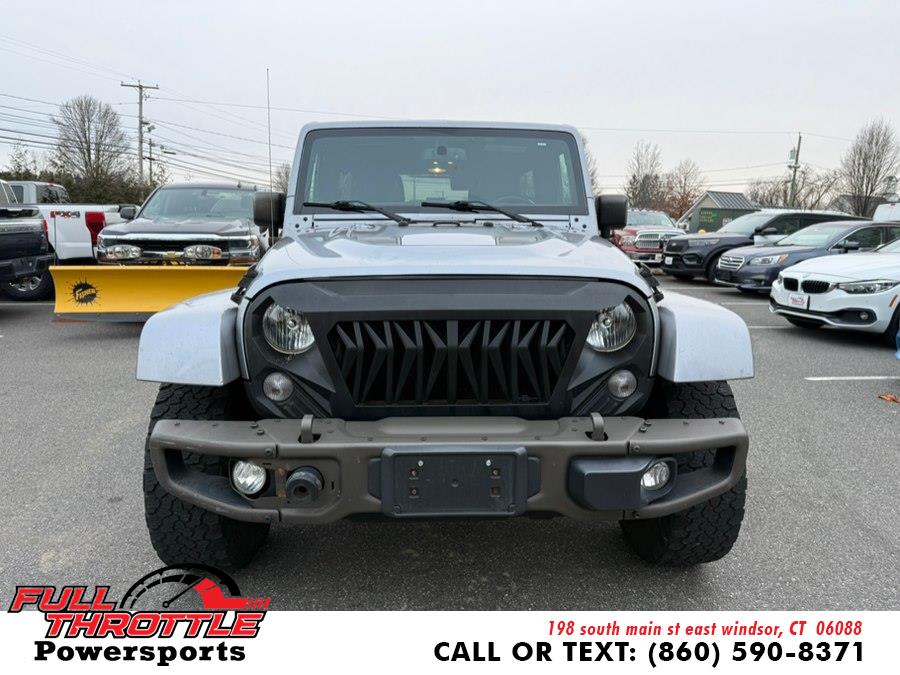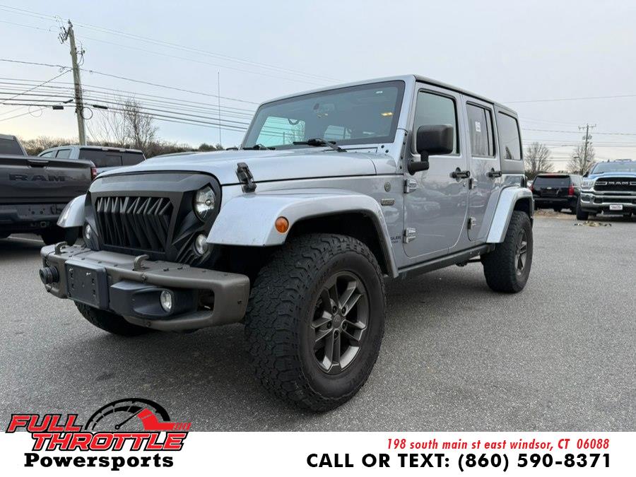 2016 Jeep Wrangler Unlimited 4WD 4dr Sahara, available for sale in East Windsor, Connecticut. This vehicle features a 3.6 V6 Cylinder Engine and is equipped with Four Wheel Drive. The Granite Crystal Metallic Clearcoat exterior is complemented by a V6 engine and a full-size spare tire. The interior provides comfort with cloth seats, an adjustable head restraint, and a leather-wrapped steering wheel. This Wrangler Unlimited is designed for both driving and off-road adventures.