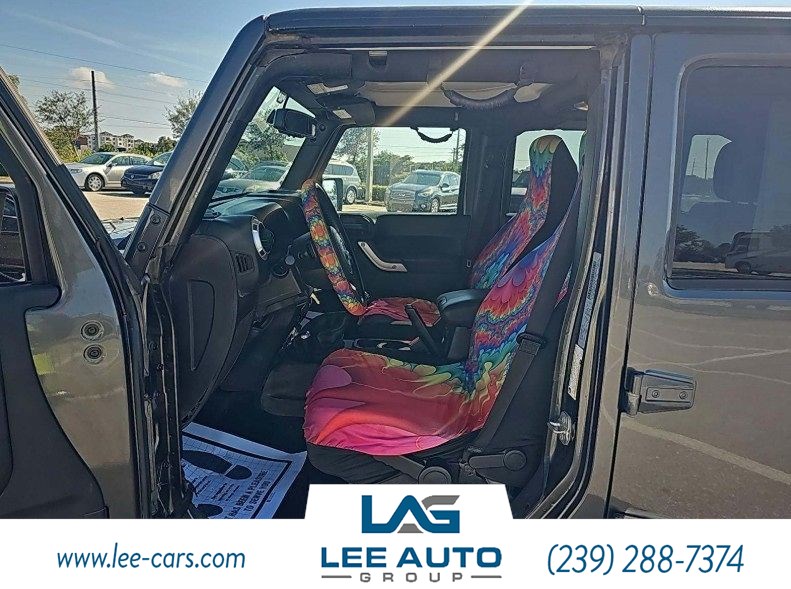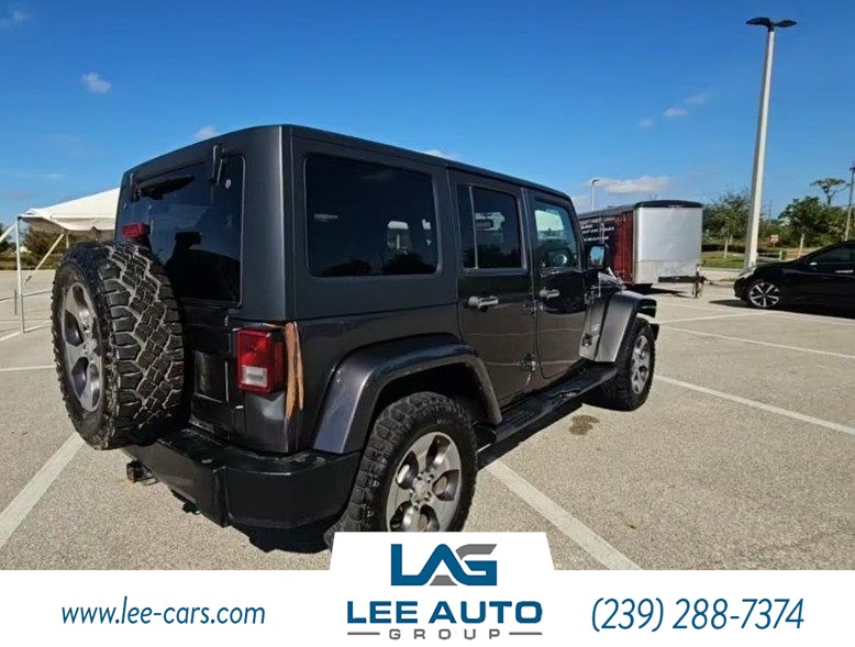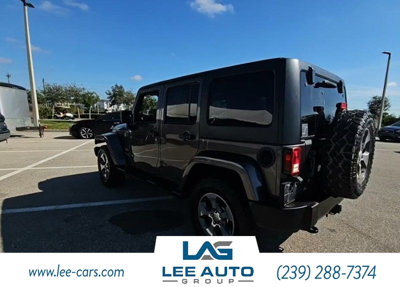 Load up your friends and hit the road in our 2016 Jeep Wrangler Unlimited Sahara 4X4 brought to you in Granite Crystal Metallic Clearcoat! Powered by a Pentastar 3.6 Liter 6 Cylinder that offers 285hp connected to a fun-to-drive 6 Speed Manual transmission for outstanding low-speed crawling capability. Enthusiasts and critics agree this Four Wheel Drive is a capable ride you must experience if you are a fun-seeker and helps you achieve nearly 21mpg on the highway! Trail-rated tough, our SUV offers legendary traction, heavy-duty premium suspension, ground clearance, and maneuverability. With just one look at our iconic Sahara, it's easy to see why this machine commands city streets and harsh terrain! Classic Jeep elements and modern design go hand in hand to make this one the one to own. Remote keyless entry, power windows, door locks, a leather steering wheel with audio controls, available satellite radio, cloth seats with adjustable head restraints, and a rear folding seat are just a few notable features you will undoubtedly appreciate. Seize the day in our Jeep and conquer the trails with confidence, knowing you've got quality construction with ABS, stability/traction control, advanced airbags, and hill start assist to keep you out of harm's way. Fun to drive and excellent to own, our Wrangler Unlimited Sahara is a tremendously capable SUV you need to experience! Save this Page and Call for Availability. We Know You Will Enjoy Your Test Drive Toward Ownership! Please call 239-288-7374 or stop by 8181 Mainline Parkway, Fort Myers, FL 33912. We have two locations with over 375 vehicles in stock and they can be seen at www.lee-cars.com. We have been family-owned and operated since 1968. We offer great financing with national lenders and have GUARANTEED CREDIT APPROVAL. We offer extended service contracts (warranties) on every vehicle in stock. We would love the opportunity to EARN your business!