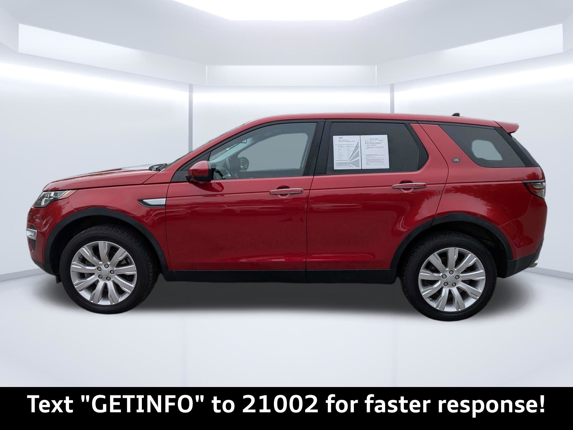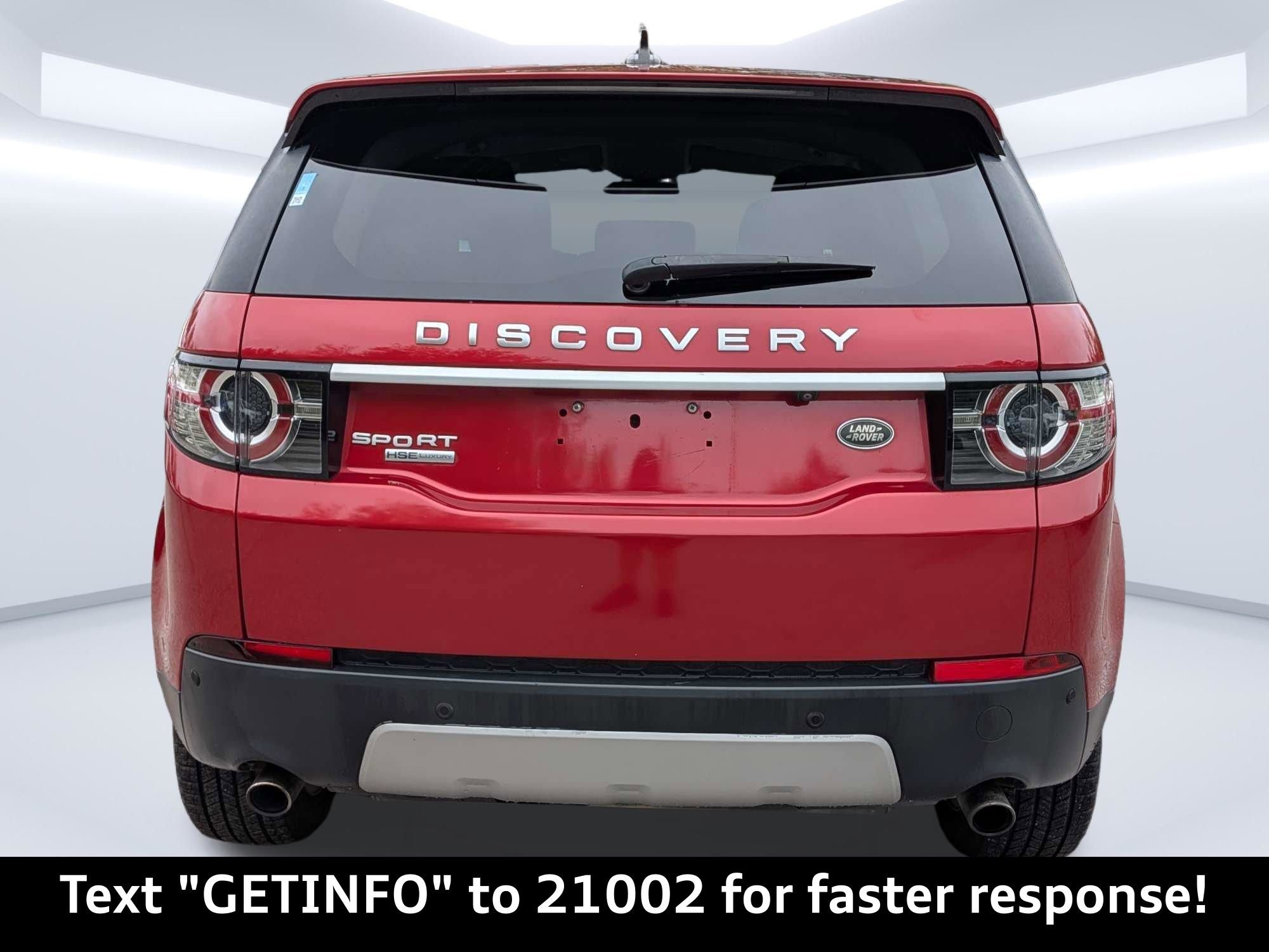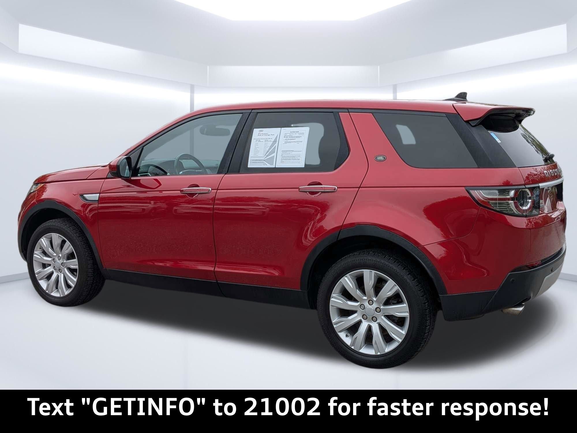 Used 2016 Land Rover Discovery Sport For sale In Jacksonville Florida. Clean CARFAX. Firenze Red Metallic 4WD 9-Speed Automatic 2.0L I4 Turbocharged Passed Rigorous Safety Inspection Performed by Certified Technician, Meticulously Detailed Inside and Out, CLEAN CARFAX, Navigation System, 10-Way Power Front Seats w/Memory, 11 Speakers, 21" Alloy wheels, 3.75 Axle Ratio, 4-Wheel Disc Brakes, ABS brakes, Air Conditioning, AM/FM radio: SiriusXM, Auto-dimming Rear-View mirror, Automatic temperature control, Brake assist, Bumpers: body-color, Delay-off headlights, Driver door bin, Driver vanity mirror, Dual front impact airbags, Dual front side impact airbags, Electronic Stability Control, Emergency communication system: InControl Protect, Exterior Parking Camera Rear, Four wheel independent suspension, Front anti-roll bar, Front Bucket Seats, Front Center Armrest, Front dual zone A/C, Front fog lights, Front reading lights, Fully automatic headlights, Garage door transmitter: HomeLink, Headlight cleaning, Heated door mirrors, High intensity discharge headlights: Bi-Xenon, Illuminated entry, Knee airbag, Leather steering wheel, Low tire pressure warning, Memory seat, Occupant sensing airbag, Outside temperature display, Overhead airbag, Panic alarm, Passenger door bin, Passenger vanity mirror, Power door mirrors, Power driver seat, Power Liftgate, Power passenger seat, Power steering, Power windows, Radio data system, Radio: 250W Audio System w/11 Speakers, Rain sensing wipers, Rear anti-roll bar, Rear fog lights, Rear Parking Sensors, Rear reading lights, Rear seat center armrest, Rear window defroster, Rear window wiper, Remote keyless entry, SD Card Navigation, Security system, SiriusXM Satellite & HD Radio, Speed control, Speed-sensing steering, Speed-Sensitive Wipers, Split folding rear seat, Spoiler, Steering wheel mounted audio controls, Tachometer, Telescoping steering wheel, Tilt steering wheel, Traction control, Trip computer, Turn signal indicator mirrors, Variably intermittent wipers, Wheels: 19" 9 Spoke Alloy (Style 902), Windsor Leather Seat Trim.