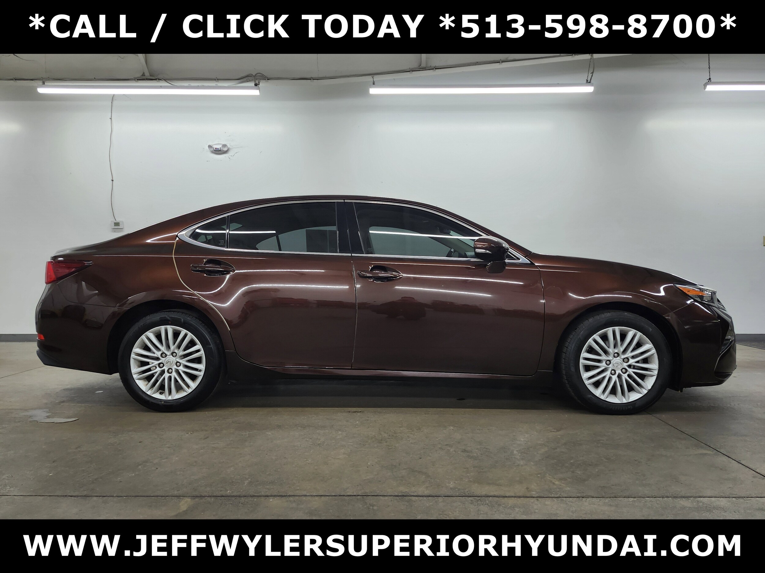 Jeff Wyler Superior Hyundai is honored to offer this good-looking 2016 Lexus ES 350 in Brown. Well equipped with: Parchment Artificial Leather, 10-Way Power Adjustable Front Seats, 17" x 7JJ Split 10-Spoke Aluminum Alloy Wheels, 4-Wheel Disc Brakes, 8 Speakers, ABS brakes, Air Conditioning, Alloy wheels, AM/FM radio: SiriusXM, Anti-whiplash front head restraints, Auto-dimming door mirrors, Auto-dimming Rear-View mirror, Automatic temperature control, Brake assist, Bumpers: body-color, CD player, Compass, Delay-off headlights, Driver door bin, Driver vanity mirror, Dual front impact airbags, Dual front side impact airbags, Electronic Stability Control, Emergency communication system: Safety Connect, Exterior Parking Camera Rear, Four wheel independent suspension, Front anti-roll bar, Front Bucket Seats, Front Center Armrest, Front dual zone A/C, Front fog lights, Front reading lights, Fully automatic headlights, Garage door transmitter: HomeLink, Heated door mirrors, Illuminated entry, Knee airbag, Leather Shift Knob, Low tire pressure warning, Occupant sensing airbag, Outside temperature display, Overhead airbag, Overhead console, Panic alarm, Passenger door bin, Passenger vanity mirror, Perforated NuLuxe Seat Trim, Power door mirrors, Power driver seat, Power moonroof, Power passenger seat, Power steering, Power windows, Radio data system, Radio: Display Audio AM/FM/CD w/SiriusXM, Rear anti-roll bar, Rear reading lights, Rear seat center armrest, Rear side impact airbag, Rear window defroster, Remote keyless entry, Security system, Speed control, Speed-sensing steering, Steering wheel mounted audio controls, Tachometer, Telescoping steering wheel, Tilt steering wheel. This sales price excludes tax, title, and dealer fees. Used vehicles 10 years of age or newer with less than 100,000 miles are eligible for the Wyler Assurance Program, but eligible vehicles must pass our reconditioning process and multi-point inspection. Provided the vehicle passes inspection, vehicles will be eligible for the 6 month/6,000 mile limited warranty. The 6 month/6,000 mile limited warranty is NOT available on AS-IS vehicles, wholesale vehicles, lease buyback/pass-thru vehicles or un-inspected vehicles. Note that this program can also apply to vehicles where the remaining factory coverage is less than 6 months or 6,000 miles. Please check the Federal Trade Commission (FTC) Buyers guide on the vehicle for full details as to whether or not warranty coverage may apply. Contact Dealer for additional details. The Wyler Assurance 6 month/6,000 Mile limited warranty ends 6 months from the date of the Retail Purchase Agreement (BUYERS ORDER) or when the vehicle's odometer registers 6,000 additional miles to the mileage listed on the BUYERS ORDER, whichever comes first. Your Deductible - The warranty holder on your contract pays the first $100 of each covered repair.