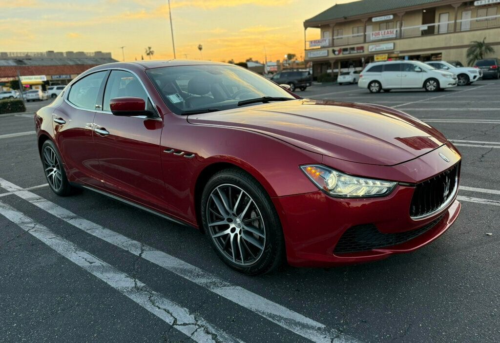 LOADED WITH VALUE! Comes equipped with: Air Conditioning, Sunroof, Front Heated Seats. This Maserati Ghibli also includes Power Driver's Seat, Clock, Climate Control, Power Passenger Seat, Tachometer, Multi-Zone Climate Control, Memory Seat Position, Cruise Control, Power Steering, Telescoping Steering Wheel, Steering Radio Controls, Power Mirrors, Moonroof, Leather Steering Wheel, Driver Airbag, Passenger Airbag, Intermittent Wipers, Side Airbags, Rear Defogger, Security System, AM/FM, CD Player, Touch Screen, Satellite Radio, Sliding Rear Window, Center Arm Rest, Cup Holders, Vanity Mirrors, Heated Mirrors, Rear Fog Lamps, Child Proof Door Locks, Daytime Running Lights, Reverse Camera, Side Curtain Airbags, Roll Stability Control, Tire Pressure Monitor, Carpeted Floor Mats, Overhead Console, Aux. Audio Input, HID Headlamps.