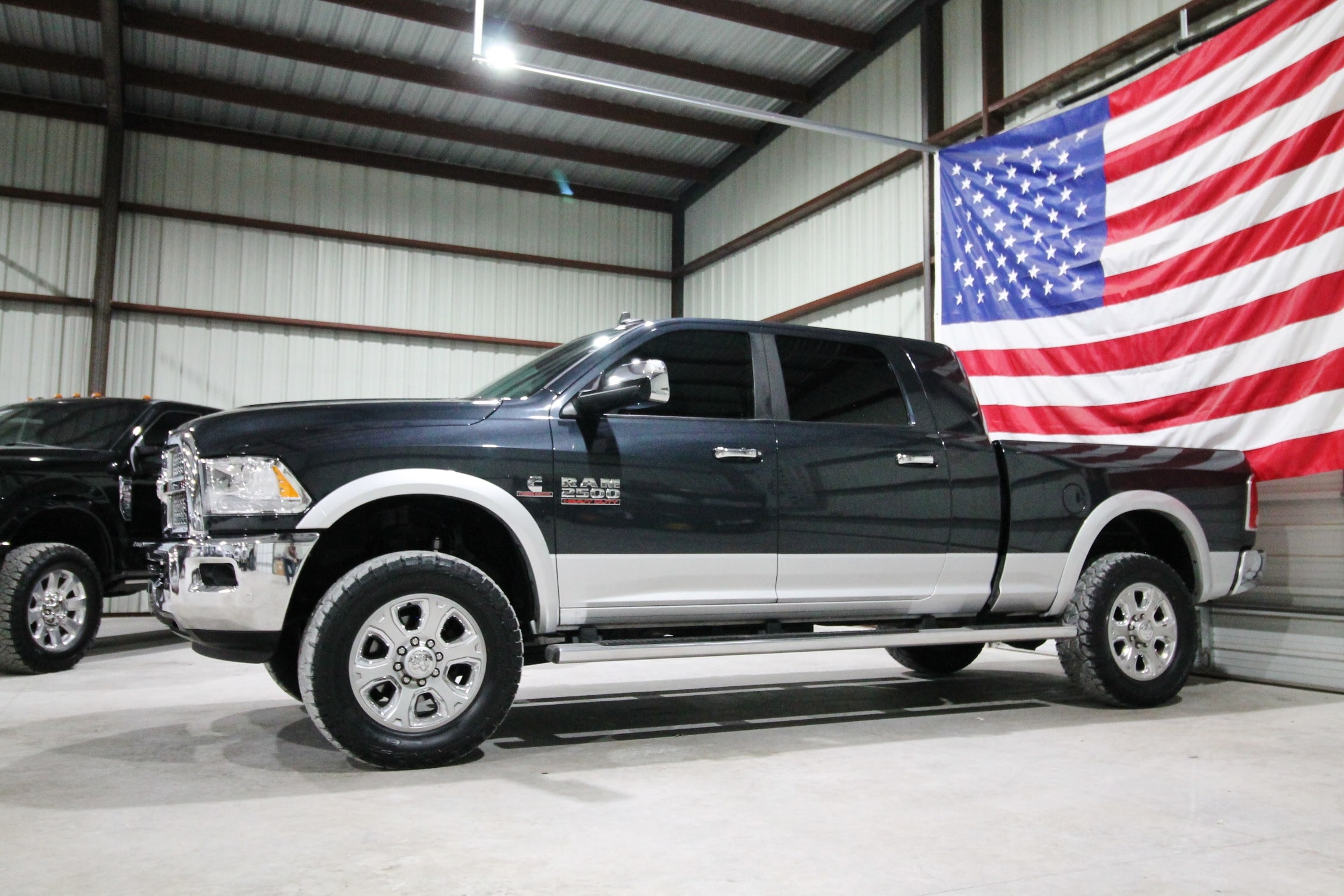 This 2016 Ram 2500 Laramie Mega Cab 4x4 is a one-owner, clean Carfax Texas truck that has been locally owned and meticulously maintained since new, powered by the 6.7L Cummins Turbo Diesel paired with an automatic transmission and electronic four-wheel drive, showing only 149k miles with 39 detailed service records reported to Carfax. It is leveled and sits on brand-new 35” all-terrain tires with Fox shocks, factory projector headlights, factory LED tail lights, Morimoto projector fog lights, a factory gooseneck hitch, and factory wheel-to-wheel running boards, all finished in beautiful Maximum Steel Metallic paint. This truck is extremely clean and straight inside and out, featuring a black leather interior with no foul odors or smoke smells, dual power heated and cooled seats, a heated steering wheel, fixed center console, factory touchscreen radio, sunroof, dual climate control, passive keyless entry with push-button start, factory auxiliary switches, built-in trailer brake, power windows, and power locks, making it a sharp, well-optioned Mega Cab that is equally ready for work or daily driving.