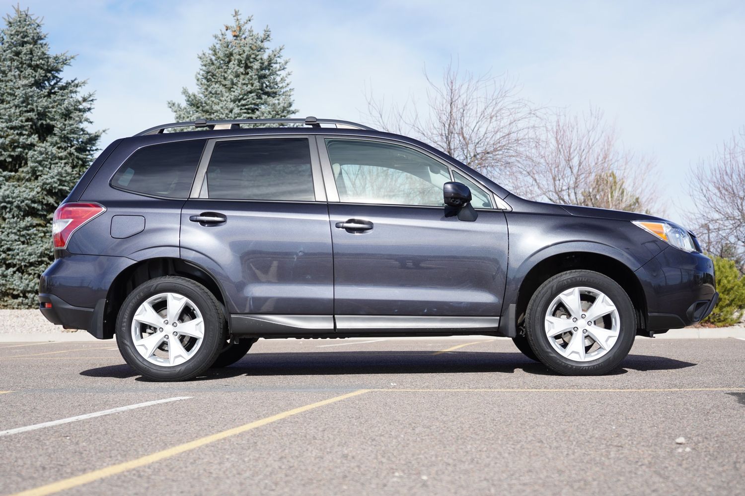 Check out this awesome one-owner 2016 Subaru Forester 2.5i Premium in a sleek Dark Gray Metallic finish. This all-wheel-drive SUV comes with a solid 2.5L engine that packs 170 horsepower, making it perfect for your next adventure. Its rugged look is matched with practical features like splash guards and an Aero Cross Bar Set—great for anyone who needs extra cargo space for outdoor gear. Inside, you’ll find comfy heated seats and mirrors from the All-Weather Package, plus some cool safety tech like EyeSight lane departure warning and forward collision mitigation. The built-in navigation system makes getting around a breeze, and you can soak up some sunlight through the sunroof/moonroof. With stylish 17" alloy wheels and all-season tires, this Subaru is ready for any journey. Don't miss out—come on by and take it for a spin!