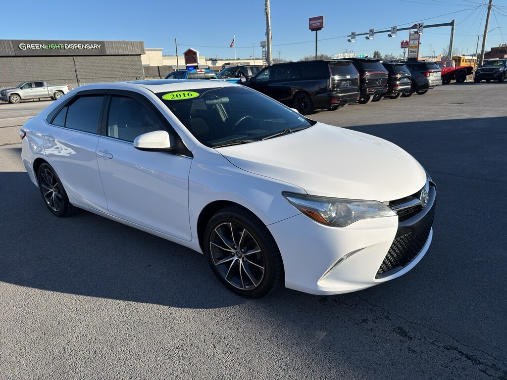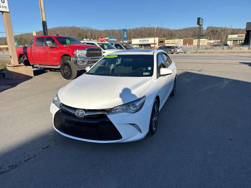 Find exceptional value with this 2016 Toyota Camry XSE, now available in Danville, WV. Designed for drivers who want sporty styling, reliable performance, and premium features, this Toyota Camry XSE pairs a fuel-efficient 4-cylinder 2.5L gasoline engine with front-wheel drive for a balanced blend of power and economy. The well-maintained interior includes leather seats that enhance comfort and durability, while automatic climate control keeps the cabin pleasant in every season. Advanced convenience and safety features come standard: the back-up camera boosts confidence when parking and reversing, and hands-free Bluetooth makes staying connected and focused on the road simple and safe. The XSE trim delivers a refined driving experience with responsive handling, contemporary styling cues, and a driver-focused cockpit. This Toyota Camry is competitively priced — offering the best price in the area for comparable vehicles — making it an outstanding value for buyers seeking dependability, efficiency, and upscale amenities without breaking the budget. Located in Danville, WV, this vehicle is ready for test drives and immediate delivery. Whether you commute daily or need a comfortable family sedan, the 2016 Toyota Camry XSE is a smart choice that combines Toyota's reputation for longevity with the desirable features drivers want. Contact us today to schedule your test drive and secure this exceptional deal.