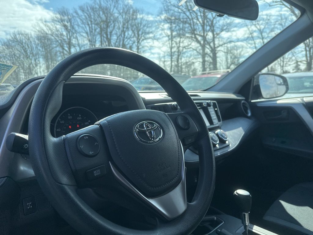 Discover the versatile and capable 2016 Toyota RAV4 LE, a compact SUV that seamlessly blends style, performance, and modern technology. With its sleek gray exterior and spacious interior, this RAV4 is the perfect companion for your adventures. Powered by a robust 2.5L 4-cylinder engine and equipped with an efficient 6-speed automatic transmission, the RAV4 LE delivers an impressive 22 city/29 highway MPG, making it an economical choice for your daily commute or weekend getaways. The available All-Wheel Drive system provides confident handling and enhanced traction, ensuring a smooth and secure ride in any weather. Climb inside and experience the well-appointed cabin, featuring the Entune Display Audio system with 6 speakers, SiriusXM All Access Radio, and HD Radio. Stay connected and entertained on the road with seamless integration of your smartphone and access to a wealth of multimedia options. The RAV4 LE's versatile design offers ample cargo space, with a rear liftgate and available roof rails, making it easy to accommodate your gear, whether it's sports equipment, camping supplies, or everyday essentials. The split-folding rear seats provide flexibility to accommodate passengers and cargo with ease. Safety is a top priority, and the RAV4 LE delivers with a comprehensive suite of advanced safety features, including ABS brakes, Electronic Stability Control, Traction Control, and a rearview camera to assist with parking and maneuvering. Dual front and side impact airbags, as well as a knee airbag, help protect you and your passengers in the event of a collision. Whether you're seeking a practical daily driver, a capable adventure companion, or a family-friendly SUV, the 2016 Toyota RAV4 LE is a compelling choice. Experience the perfect blend of utility, technology, and safety that this versatile SUV has to offer. We invite you to visit our showroom and take this exceptional RAV4 for a test drive. Let us demonstrate how it can enhance your driving experience and exceed your expectations.