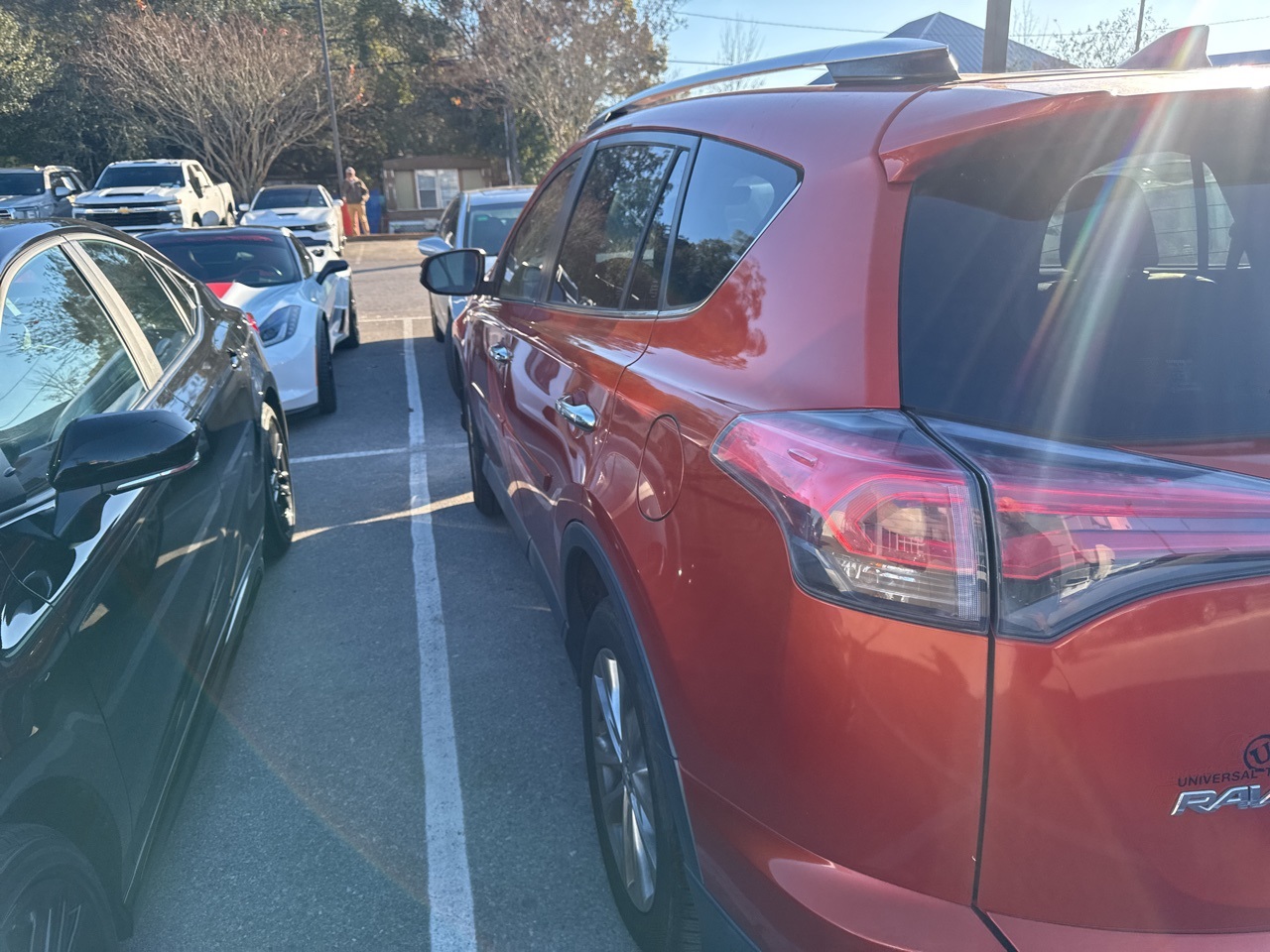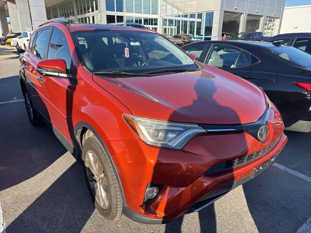 2016 Toyota RAV4 Limited Orange FWD 6-Speed Automatic 23/30 City/Highway MPG 2.5L 4-Cylinder DOHC Dual VVT-i. Recent Arrival! Black w/SofTex Seat Trim. Black w/SofTex Seat Trim, 3.815 Axle Ratio, 4-Wheel Disc Brakes, 6 Speakers, ABS brakes, Air Conditioning, Alloy wheels, AM/FM radio: SiriusXM, Auto High-beam Headlights, Auto-dimming Rear-View mirror, Automatic temperature control, Brake assist, Bumpers: body-color, Compass, Driver door bin, Driver vanity mirror, Dual front impact airbags, Dual front side impact airbags, Electronic Stability Control, Exterior Parking Camera Rear, Four wheel independent suspension, Front anti-roll bar, Front Bucket Seats, Front Center Armrest, Front dual zone A/C, Front fog lights, Front reading lights, Fully automatic headlights, Garage door transmitter: HomeLink, Heated door mirrors, Heated front seats, Heated Front Sport Seats, Illuminated entry, Knee airbag, Lane Departure Warning System, Leather Shift Knob, Leather steering wheel, Low tire pressure warning, Memory seat, Navigation System, Occupant sensing airbag, Outside temperature display, Overhead airbag, Overhead console, Panic alarm, Passenger door bin, Passenger vanity mirror, Power door mirrors, Power driver seat, Power Liftgate, Power moonroof, Power steering, Power windows, Radio data system, Radio: Entune Premium Audio with Navigation, Rear anti-roll bar, Rear seat center armrest, Rear window defroster, Rear window wiper, Remote keyless entry, Roof rack: rails only, SofTex Seat Trim, Speed control, Speed-sensing steering, Split folding rear seat, Spoiler, Steering wheel mounted audio controls, Tachometer, Telescoping steering wheel and Tilt steering the wheel and Tilt steering the wheel and Traction control. Find a like vehicle for less money? Show us.