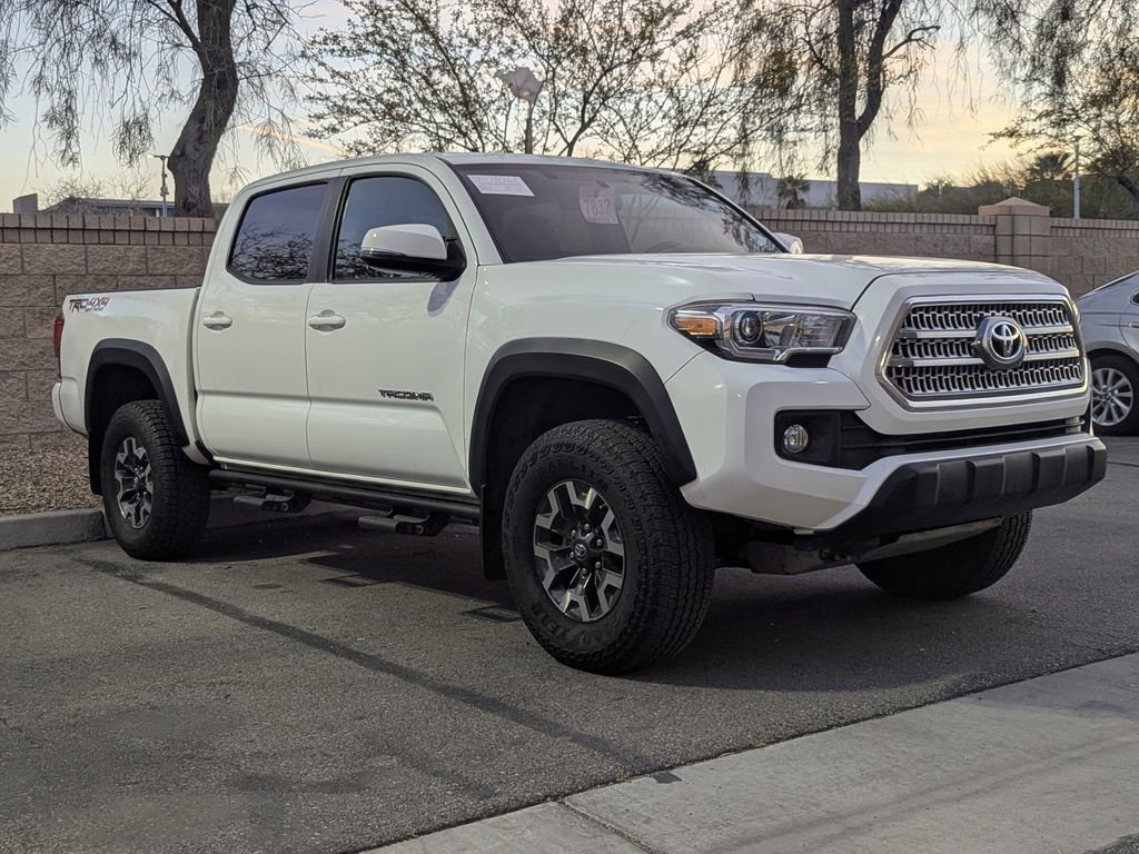 Clean CARFAX. TRD Offroad, 4WD, Auto Headlights, Blind Spot Monitor w/Rear Cross Traffic Alert, Brake assist, Dual Automatic Climate Control, Dual front impact airbags, Dual front side impact airbags, Electronic Stability Control, Heated Front Seats, Knee airbag, Lane Change Assist, Low tire pressure warning, Navigation System, Occupant sensing airbag, Power Tilt/Slide Moonroof, Premium & Technology Package w/JBL Audio, Radio: Entune Premium JBL AM/FM/CD w/Nav & App Ste, Rear Parking Assist Sonar, Remote keyless entry, Speed-sensing steering, Steering wheel mounted audio controls, Towing Package. 2016 Toyota Tacoma TRD Off-Road 4WD 6-Speed Automatic White V6. Recent Arrival!