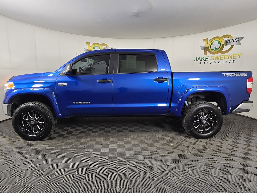Our 2016 Toyota Tundra SR5 CrewMax 4X4 is presented in Blazing Blue Pearl and has a reputation for fun! Powered by a 5.7 Liter iForce V8 that offers 381hp tethered to a robust 6 Speed Automatic transmission for incredible pulling power. This Four Wheel Drive team provides nearly 18mpg on the road and acceleration to get your blood pumping! The commanding stance of our SR5 is highlighted by lots of chrome and a tough, authoritative stance. Inside our SR5 CrewMax, premium materials on stylish gauges and functional buttons and knobs are refreshingly natural to use and add to the ergonomic design and craftsmanship of the cabin. Entune Audio Plus, with the connected navigation app and available satellite radio, keeps you connected and entertained to get your job done in comfort and style. Try to suppress the smile on your face as this truck works smoothly through its gears, propelling you down the road while turning heads! Our Toyota leads the pack safely thanks to intelligently designed ABS, stability/traction control, trailer sway control, and numerous airbags. You deserve this Tundra SR5 that stands out in the crowd for work or play! Save this Page and Call for Availability. We Know You Will Enjoy Your Test Drive Towards Ownership! Our Toyota leads the pack safely thanks to intelligently designed ABS, stability/traction control, trailer sway control, and numerous airbags. You deserve this Tundra SR5 that stands out in the crowd for work or play! Save this Page and Call for Availability. We Know You Will Enjoy Your Test Drive Towards Ownership! Our Toyota leads the pack safely thanks to intelligently designed ABS, stability/traction control, trailer sway control, and numerous airbags. You deserve this Tundra SR5 that stands out in the crowd for work or play! Save this Page and Call for Availability. We Know You Will Enjoy Your Test Drive Towards Ownership! Our Toyota leads the pack safely thanks to intelligently designed ABS, stability/traction control, trailer sway control, and numerous airbags.