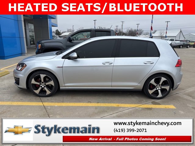 2016 Volkswagen Golf GTI S heated seats rear camera Bluetooth Reflex Silver Metallic. Test drive any used vehicle and receive $50. Drive a vehicle get $50. No pressure to purchase. Act now. One gift card per household per year. Call 419-399-2071 today for your appointment. Go to www.stykemainchevy.com and fill out your test drive form. Must bring printed form with you to receive $50. Don't forget... most of our preowned vehicles come with a 3 month - 3,000 warranty... free of charge. Contact us to find out if this one qualifies. Stykemain Chevrolet in Paulding, OH is closer than you think. Just take exit 13 off new US 24 to US 127 South. Driving time to Stykemain Chevrolet: Defiance = 15 minutes, Van Wert = 18 minutes, Bryan = 22 minutes, Lima = 42 minutes. Ft Wayne = only 39 minutes! Come check us out. Visit us online at stykemainchevy.com Proudly serving: Paulding, Defiance, Fort Wayne, Van Wert, Findlay, Toledo, Delphos, Detroit, Indianapolis, South Bend, Elkhart, and all of greater Ohio, Michigan and Indiana.