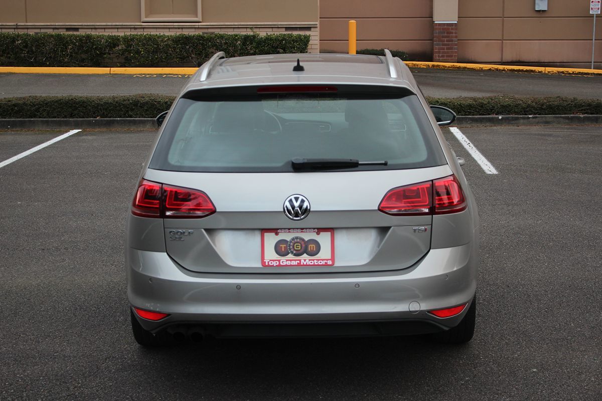Meet our 2016 Volkswagen Golf SportWagen TSI SEL displayed in Silver. Powered by a TurboCharged 1.8 Liter 4 Cylinder that offers 170hp connected to a 6 Speed Tiptronic Automatic transmission. The artistry of this Front Wheel Drive wagon is apparent in the comfortable ride, precise steering, powerful brakes, and all-around outstanding driving characteristics while securing nearly 36mpg on the highway. The SportWagen is accented by roof rails, attractive wheels, heated mirrors, sunroof, and heated windshield-washer nozzles. Inside the TSI SEL, find a refined first-class interior with comfortable leather heated seats and technology that includes remote keyless entry, complete power accessories, and a trip computer to make the daily routine more convenient. You will stay focused on the road while still being connected and entertained via Large Screen, Bluetooth hands-free phone/audio streaming and an eight-speaker sound system with a CD player and an auxiliary audio jack. Safety is monumental at Volkswagen, offering ABS, Backup Camera, Front and Rear Sensors, stability/traction control, front-seat side-impact airbags, and full-length side curtain airbags have earned this Jetta SportWagen TSI SE stellar safety ratings. Indeed in a class by itself, this is a great affordable alternative to small crossovers and SUVs. Save this Page and Call for Availability. We Know You Will Enjoy Your Test Drive Towards Ownership!