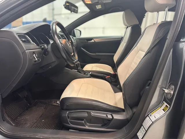 Used 2016 Volkswagen Jetta 1.8T Sport for sale in Eden Prairie, MN. Discover the 2016 Volkswagen Jetta 1.8T Sport, a sleek and stylish sedan that combines sporty performance with modern convenience. Draped in a sophisticated Platinum Gray Metallic exterior and featuring a refined 2-tone Black/Ceramique interior, this used vehicle is designed to turn heads while delivering a comfortable driving experience. With only 112,219 miles, it offers a balance of reliability and excitement, powered by a lively 1.8-liter turbocharged four-cylinder engine producing 170 horsepower and 184 lb-ft of torque. The 6-speed automatic transmission with Tiptronic provides smooth shifting and enhanced control, making every drive engaging. This front-wheel-drive sedan boasts impressive fuel efficiency, averaging 25 mpg in the city and 36 mpg on the highway, perfect for daily commuting or weekend adventures. Equipped with advanced features like Apple CarPlay, Bluetooth connectivity, a backup camera, navigation, and satellite radio readiness, the Jetta ensures you stay connected and entertained at every turn. The inclusion of fog lights, heated seats, push start, and a premium sound system further elevates the driving experience, blending practicality with luxury in a well-rounded package.