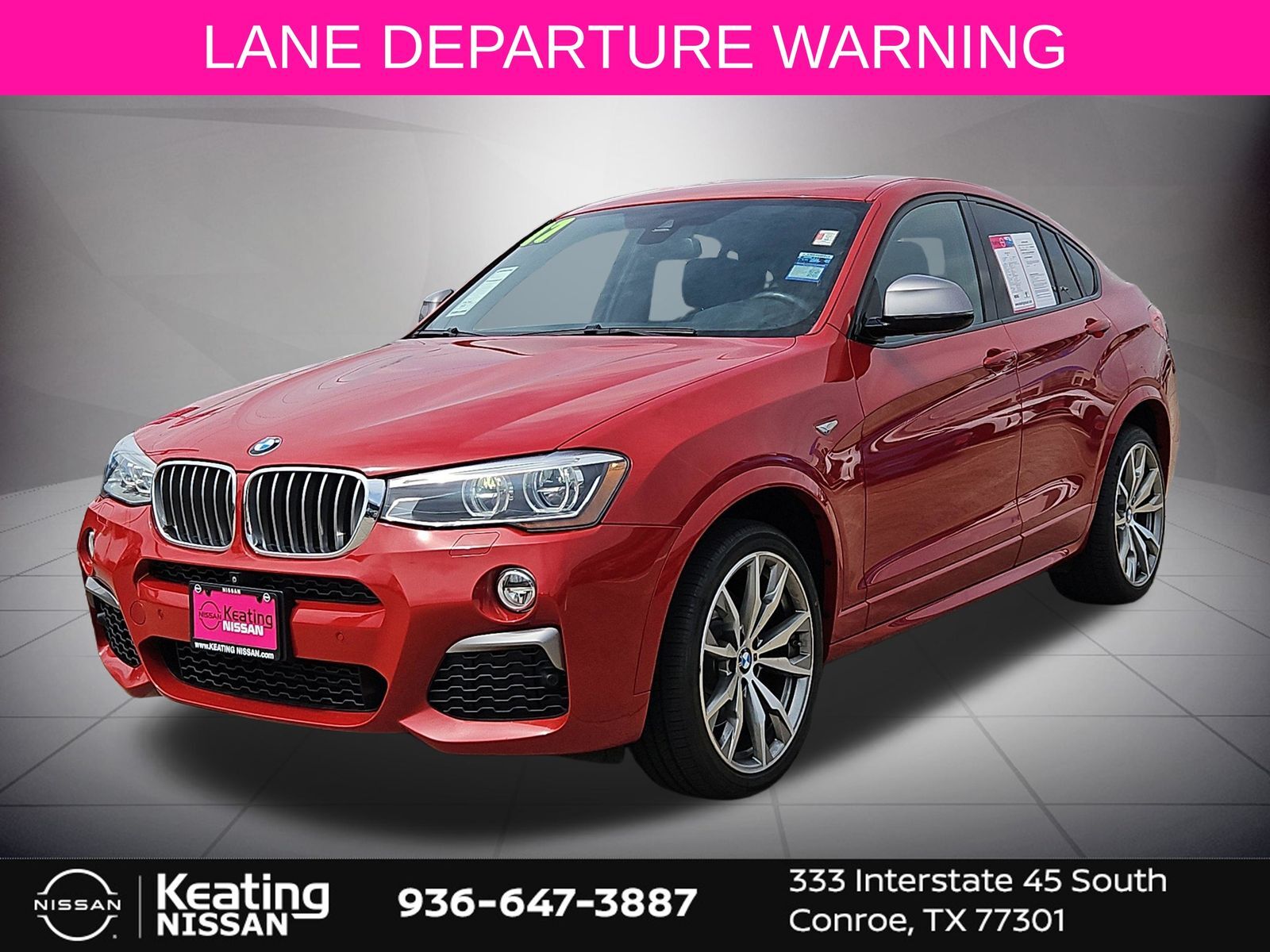Elevate your driving experience with this exceptional 2017 BMW X4 M40i. Boasting a powerful 3.0L I6 Turbocharged engine delivering 355 horsepower, this all-wheel-drive SUV is engineered to thrill. Finished in a stunning Red exterior, this one-owner vehicle has been meticulously maintained and is ready to take you on unforgettable journeys. Designed with the discerning driver in mind, this BMW X4 M40i offers a dynamic and engaging driving experience. The 8-speed automatic sport transmission provides seamless power delivery, while the all-wheel-drive system ensures confident handling in all conditions. With an impressive EPA-estimated 19 MPG in the city and 26 MPG on the highway, this vehicle balances performance and efficiency. Beyond its impressive performance, this BMW X4 M40i is equipped with a host of advanced features that enhance your driving experience and provide peace of mind. The push-button start, backup camera, and blind spot warning system are just a few of the conveniences that make this SUV a true standout. Whether navigating busy city streets or exploring winding country roads, this BMW X4 M40i is ready to elevate your driving experience. Imagine the thrill of commanding the road in this exceptional 2017 BMW X4 M40i. With its captivating style, uncompromising power, and impressive array of features, this vehicle is poised to exceed your expectations. We invite you to schedule a test drive and experience the difference for yourself. At our dealership, we are committed to providing our customers with the highest level of service and satisfaction. Our knowledgeable team is here to guide you through the buying process and ensure that you find the perfect vehicle to meet your needs. We take pride in our extensive inventory and our ability to offer competitive pricing, making us the ideal destination for your next automotive purchase. Don't miss the opportunity to make this remarkable 2017 BMW X4 M40i your own. Contact us today to schedule a test drive and discover the true potential of this exceptional SUV.