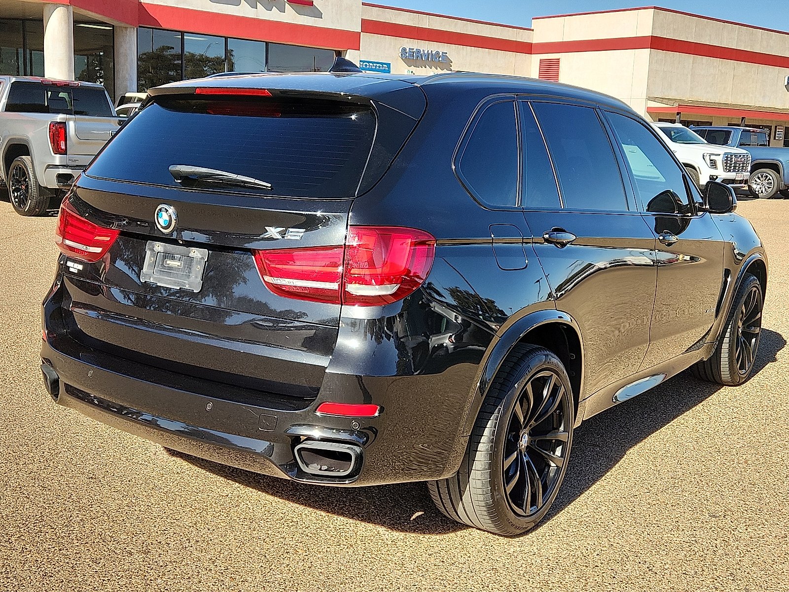 This 2017 BMW X5 xDrive50i in Black Sapphire Metallic comes with the following features: 4.4L V8 DOHC 32V Twin Turbocharged 8-Speed Automatic AWD Driving Assistance Plus Package (Active Blind Spot Detection, Active Driving Assistant, Speed Limit Information, and Surround View), Executive Package (Ceramic Controls, Head-Up Display, Leather Dashboard, Rear Manual Side Window Shades, Soft-Close Automatic Doors, WiFi Hotspot, and Wireless Charging), Lighting Package (Adaptive Full LED Lights and Automatic High Beams), M Sport Package (Aerodynamic Kit, High-Gloss Roof Rails, M Steering Wheel, Poplar Wood Trim, Shadowline Exterior Trim, Standard Suspension, Wheels: 19" x 9" M Light Alloy Double Spoke, and Without Lines Designation Outside), M Sport Package (337), Black Leather, 16 Speakers, 4-Wheel Disc Brakes, ABS brakes, Auto tilt-away steering wheel, Automatic temperature control, Dakota Leather Upholstery, Delay-off headlights, Emergency communication system: BMW Assist eCall, Exterior Parking Camera Rear, Four wheel independent suspension, Front Bucket Seats, Front dual zone A/C, Front Ventilated Seats, Fully automatic headlights, Garage door transmitter, Genuine wood console insert, Genuine wood dashboard insert, Genuine wood door panel insert, harman/kardon Surround Sound System, Head restraints memory, Heated door mirrors, Heated Front Seats, Heated front seats, High intensity discharge headlights: Bi-xenon, Low tire pressure warning, Lumbar Support, Memory seat, Multi-Contour Seats, Navigation System, Outside temperature display, Panic alarm, Power door mirrors, Power driver seat, Power Front Seats, Power moonroof, Power passenger seat, Rain sensing wipers, Rear dual zone A/C, Satin Aluminum Roof Rails, Security system, Speed-Sensitive Wipers, Steering wheel memory, Steering wheel mounted A/C controls, Steering wheel mounted audio controls and telescoping steering wheel type.