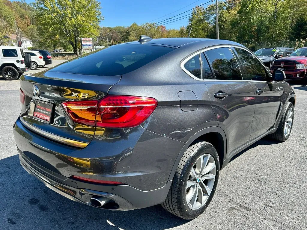 This used 2017 BMW X6 xDrive35i Sport Utility offers a compelling blend of luxury, performance, and practicality. With a sleek gray exterior complemented by a refined black leather interior, this SUV is designed to turn heads while providing a comfortable driving experience. Powered by a turbocharged 3.0-liter six-cylinder engine delivering 300 horsepower and 300 lb-ft of torque, it offers spirited performance paired with impressive fuel efficiency of 18 mpg city and 24 mpg highway. Equipped with an 8-speed automatic transmission and full-time AWD, this vehicle ensures confident handling across diverse road conditions. Features like Bluetooth connectivity, heated leather seats, memory seat settings, integrated navigation system, push-to-start ignition, satellite radio readiness, sunroof, and xenon headlights enhance both convenience and luxury in every drive. Despite its used status, this BMW X6 has been maintained to deliver a reliable and enjoyable experience. It features modern amenities such as a 10.2-inch infotainment touchscreen, voice-activated hands-free calling, HD radio, and a 9-speaker premium audio system for immersive sound. The vehicle’s real-time traffic navigation data and 20GB hard drive add to its tech-savvy profile, making daily commutes and long journeys equally enjoyable. With a seating capacity of five, four doors, and a stylish gray exterior, this SUV combines versatility and elegance, making it an excellent choice for those seeking a used luxury vehicle that offers both performance and comfort.