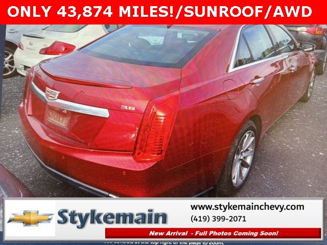2017 Cadillac CTS 3.6L Luxury only 43,874 miles! AWD sunroof navigation, Red Obsession Tintcoat. Test drive any used vehicle and receive $50. Drive a vehicle and get $50. No pressure to purchase. Act now. One gift card per household per year. Call 419-399-2071 today for your appointment. Go to www.stykemainchevy.com and fill out your test drive form. Must bring printed form with you to receive $50. Don't forget... most of our preowned vehicles come with a 3 month - 3,000 warranty... free of charge. Contact us to find out if this one qualifies. Stykemain Chevrolet in Paulding, OH is closer than you think. Just take exit 13 off new US 24 to US 127 South. Driving time to Stykemain Chevrolet: Defiance = 15 minutes, Van Wert = 18 minutes, Bryan = 22 minutes, Lima = 42 minutes. Ft Wayne = only 39 minutes! Come check us out. Visit us online at stykemainchevy.com Proudly serving: Paulding, Defiance, Fort Wayne, Van Wert, Findlay, Toledo, Delphos, Detroit, Indianapolis, South Bend, Elkhart, and all of greater Ohio, Michigan and Indiana.