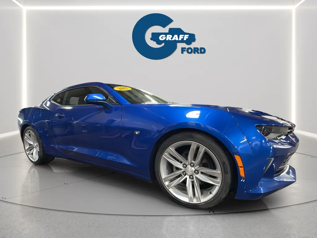 Experience the thrill of driving a 2017 Chevrolet Camaro 1LT coupe finished in striking Hyper Blue Metallic. This used model combines sporty style with everyday practicality, offering a powerful yet efficient 2.0-liter turbocharged four-cylinder engine that delivers 275 horsepower and 295 lb-ft of torque. With its sleek two-door design and RWD setup, this coupe is built for dynamic handling and exhilarating performance. Inside, you'll find a Jet Black Seat Trim that complements the modern, driver-focused interior. Loaded with features like Apple CarPlay, Bluetooth, a backup camera, keyless entry, push start, satellite radio readiness, and a WiFi hotspot, this Camaro ensures you stay connected and entertained on every drive. The 8-speed automatic transmission provides smooth shifting, while an estimated 22 mpg city and 31 mpg highway make it a practical choice for daily commuting and weekend adventures. This Camaro's sporty appeal is enhanced by its reliable safety and security features. Dual front knee airbags and four-wheel anti-lock braking system (ABS) help protect occupants, while anti-lockout power door locks add convenience. The programmable safety key allows for customizable access, and the electronic parking brake offers added control. These features work together to provide peace of mind without compromising the car’s energetic performance. The 2017 Chevrolet Camaro also excels in entertainment and technology. Its 7-inch touchscreen infotainment system offers easy access to radio and media controls, complemented by six speakers that fill the cabin with sound. Electronic messaging assistance, both read and voice-operated, keeps you connected safely on the go. Additionally, auxiliary inputs for USB and iPod/iPhone devices ensure your favorite music is always at hand, making every drive enjoyable and connected. Performance is at the heart of this Camaro with a tuned sport suspension that enhances handling and stability. The turbocharged engine combined with this suspension setup delivers an engaging driving experience, whether you're carving through corners or cruising on the highway. This used Camaro provides a compelling mix of power, agility, and style for drivers who demand more from their vehicle. Discover the thrilling performance and sleek style of the 2017 Chevrolet Camaro 1LT. This stunning sports car delivers an exhilarating driving experience, thanks to its potent 2.0L Turbocharged engine and 8-speed automatic transmission with rear-wheel drive. With an impressive 22 city/31 highway MPG, you'll enjoy the perfect balance of power and efficiency.